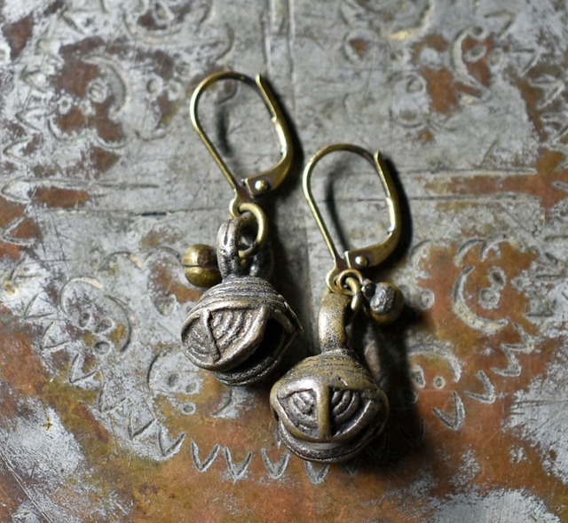oldミャンマー鈴と小さな民族鈴のピアス