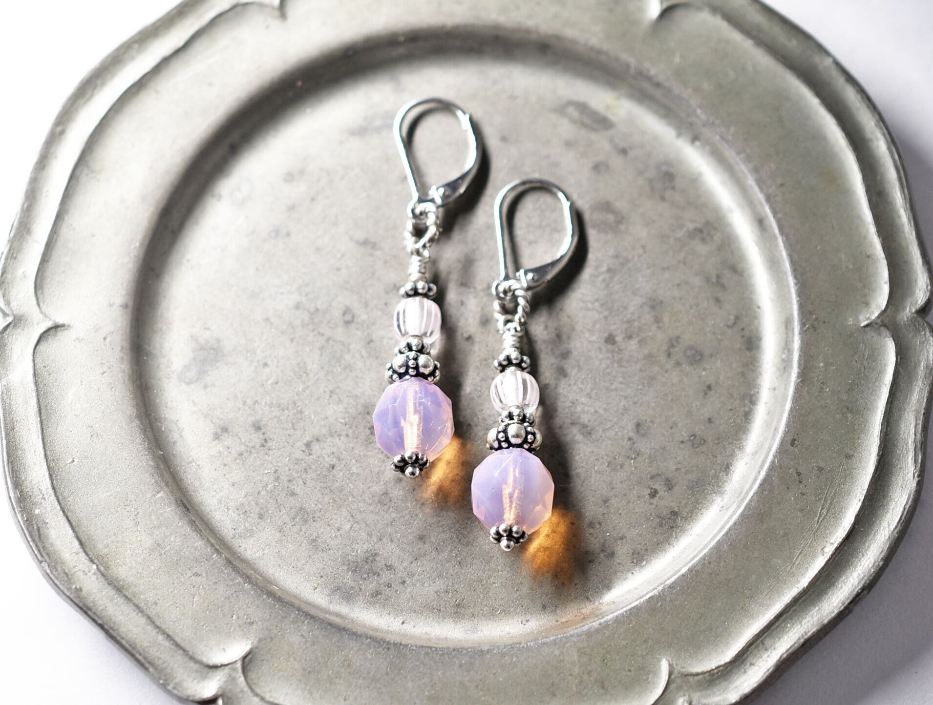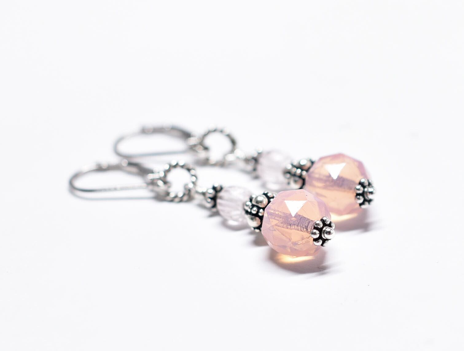 ピンクオパールヴィンテージボヘミアビーズとグーズベリーのピアス