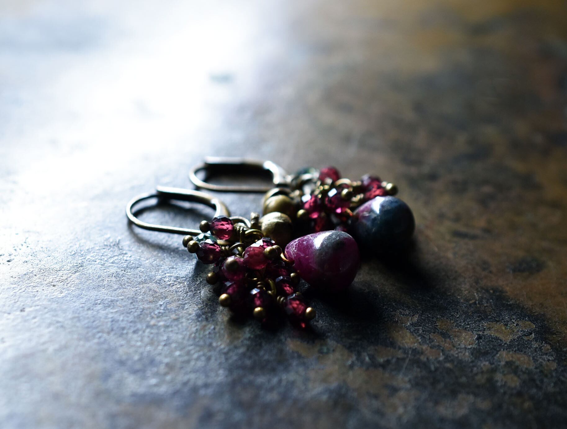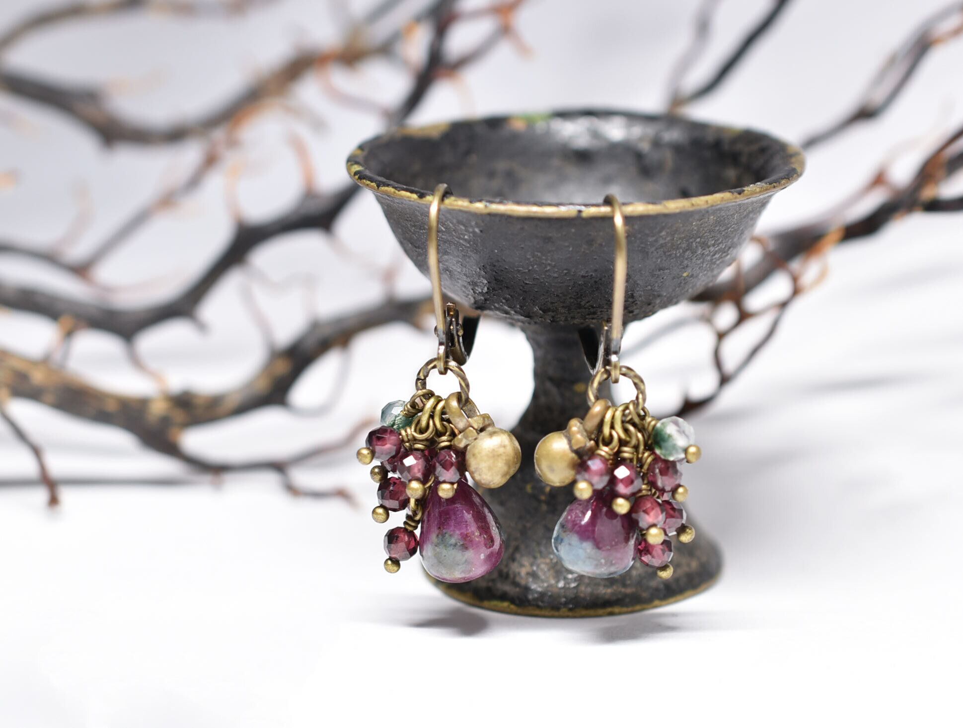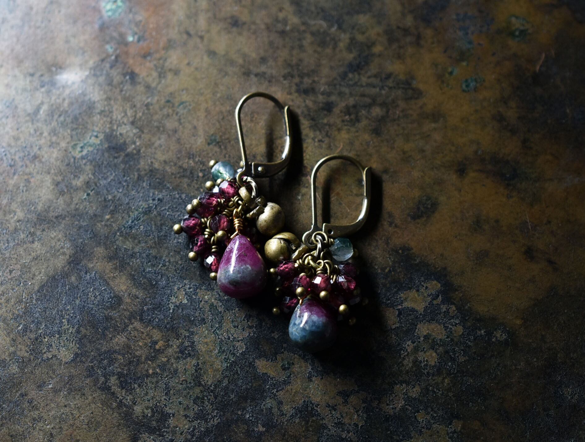 素材:ルビーインゾイサイト、ガーネット、モスアゲート、真鍮、ミックスメタル