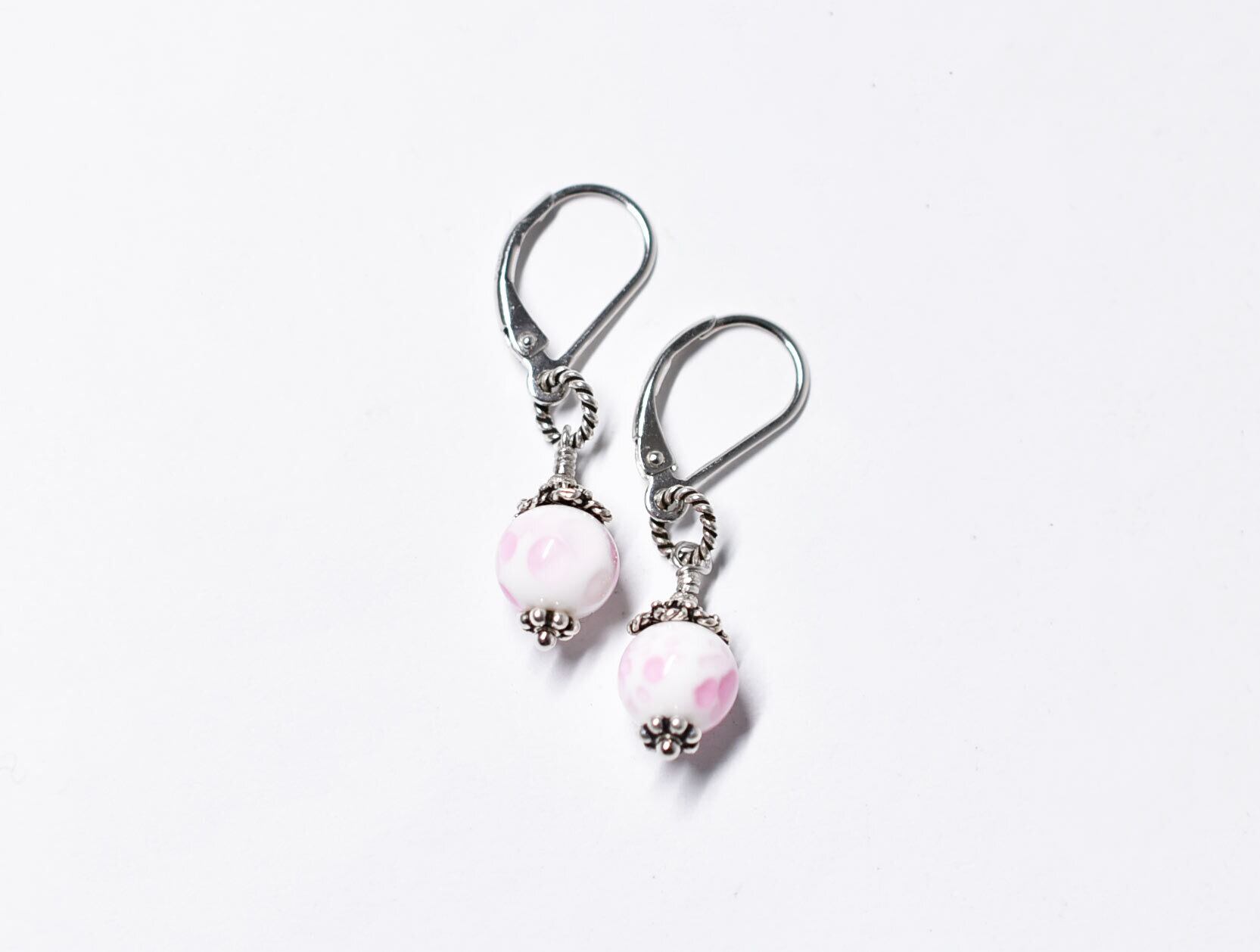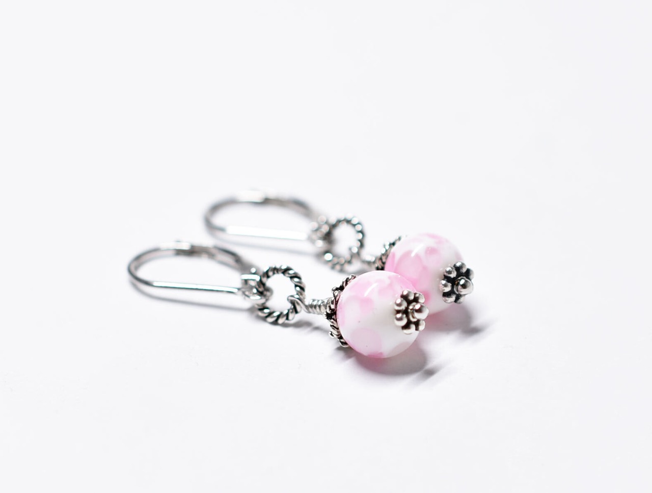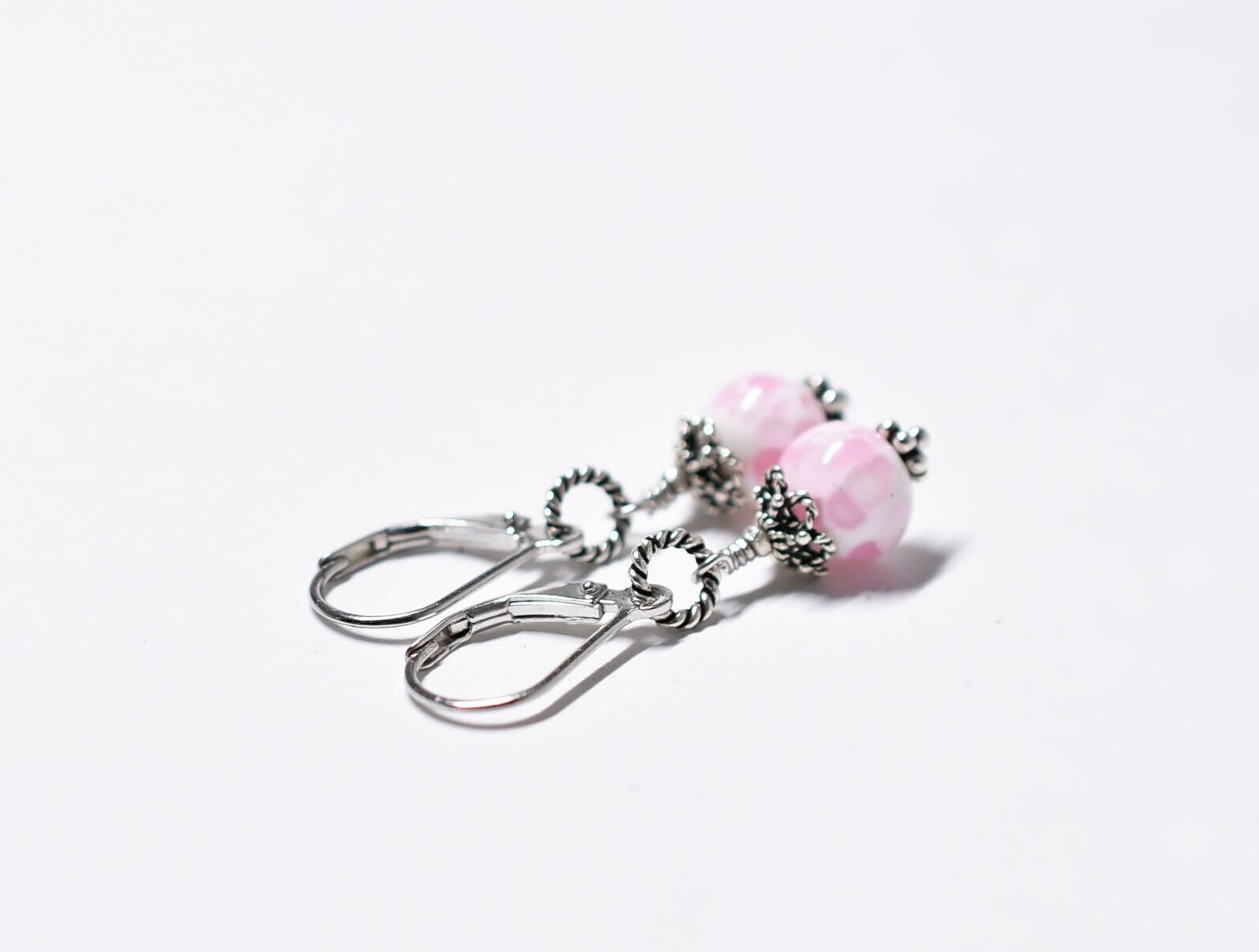 桜吹雪模様のjapanヴィンテージビーズを繋いだ小さなピアスです。