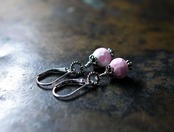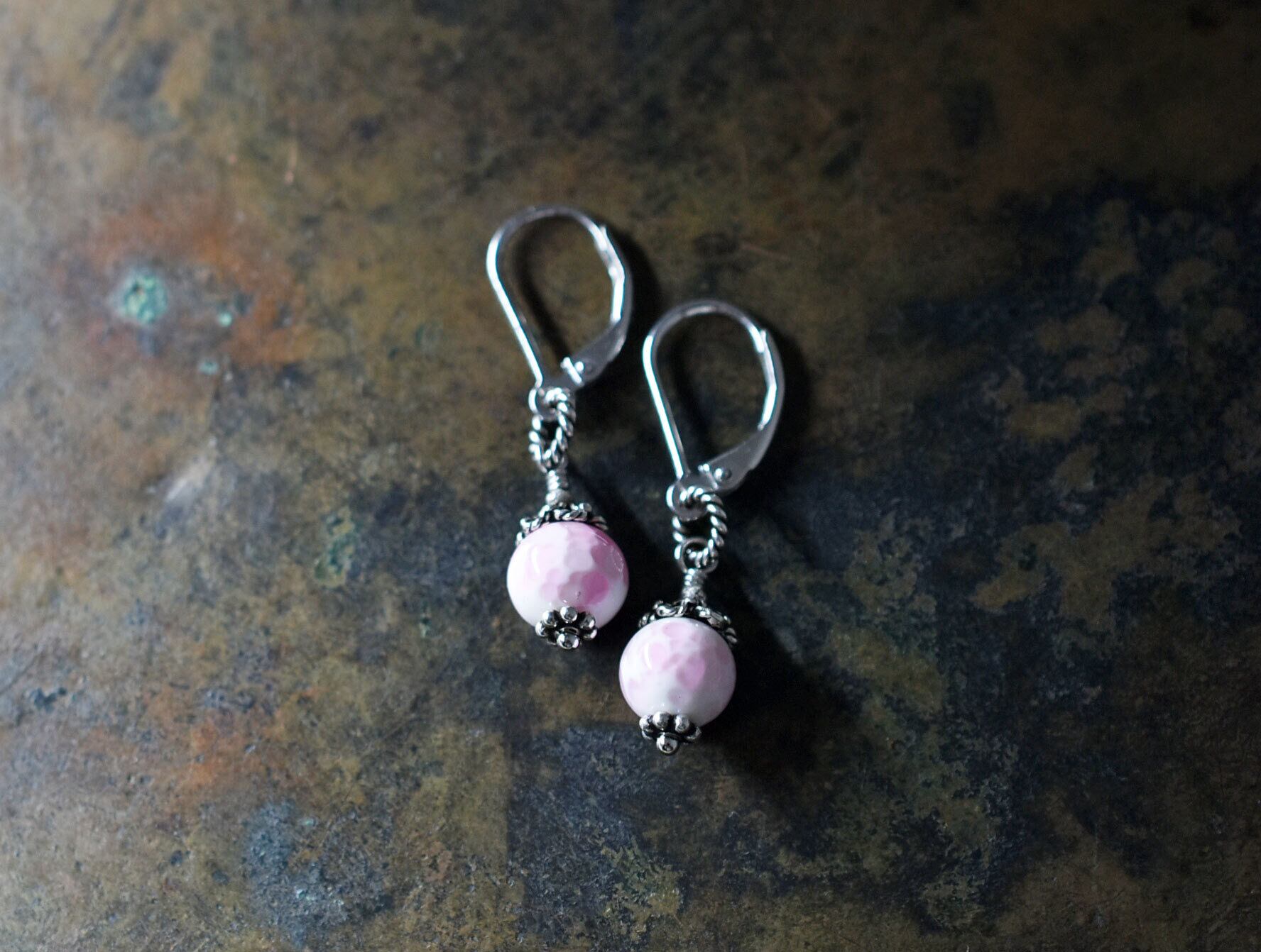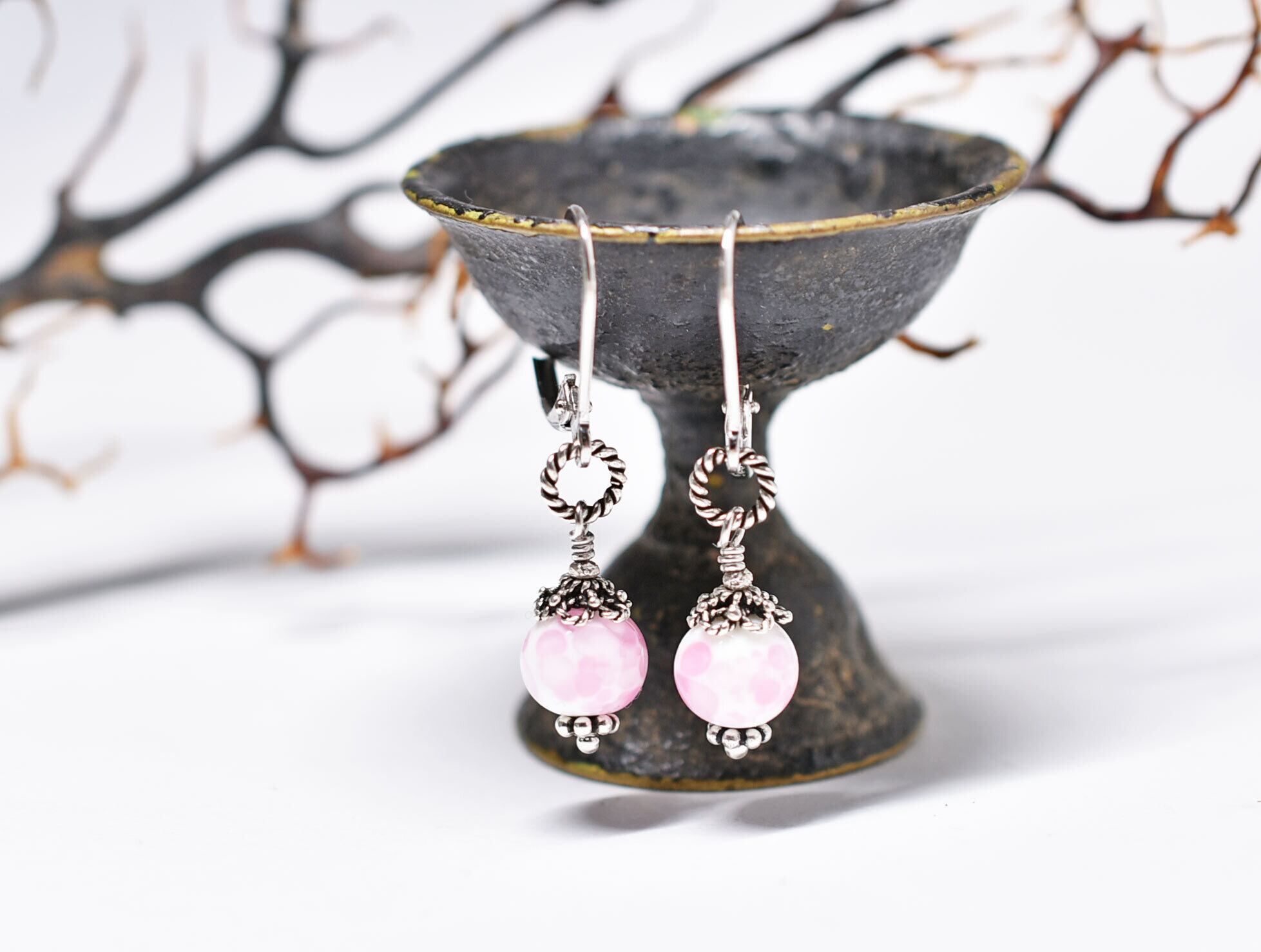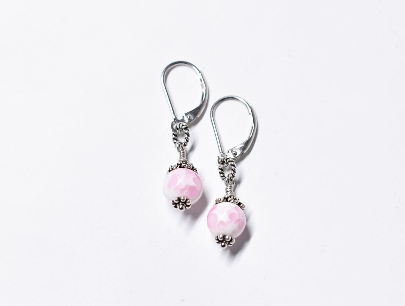 桜吹雪模様のjapanヴィンテージビーズを繋いだ小さなピアスです。