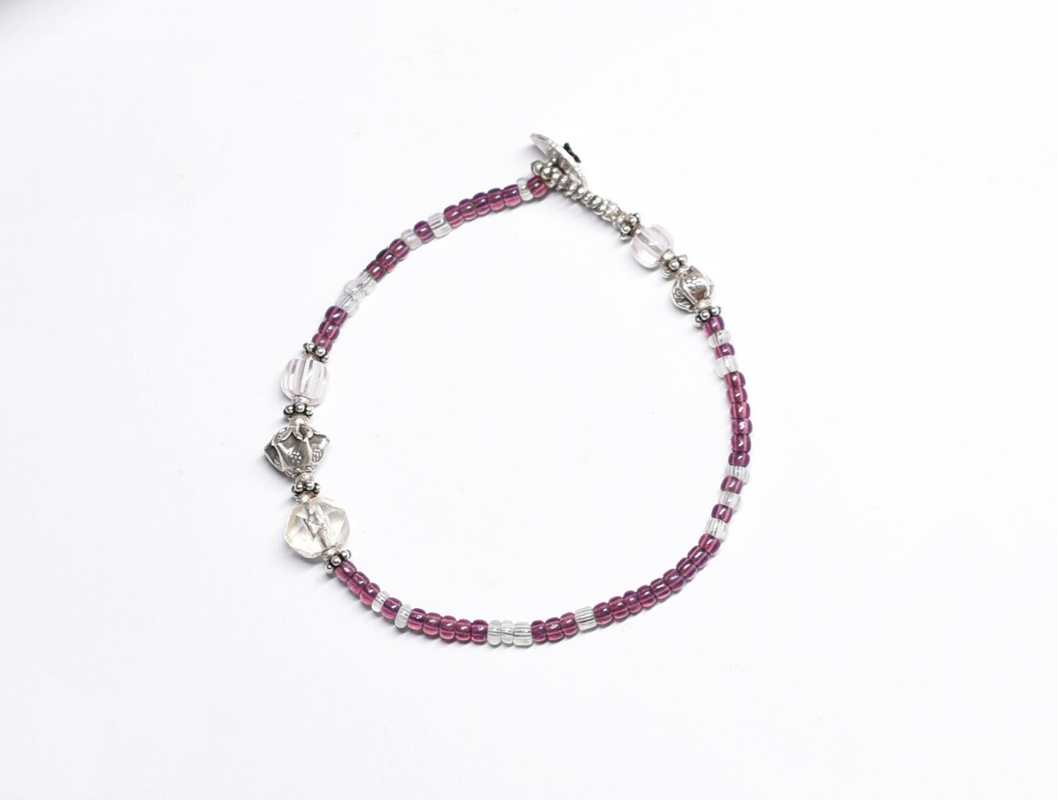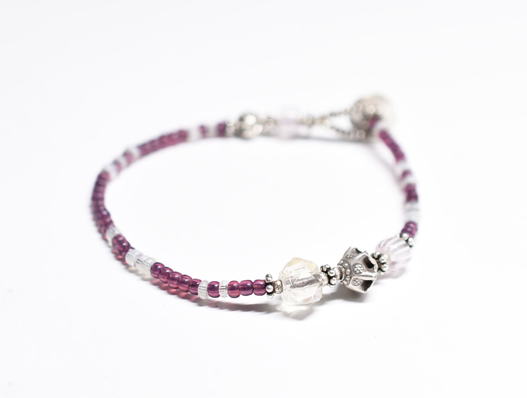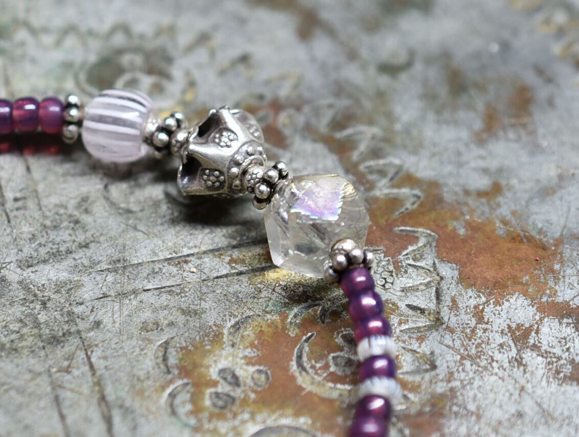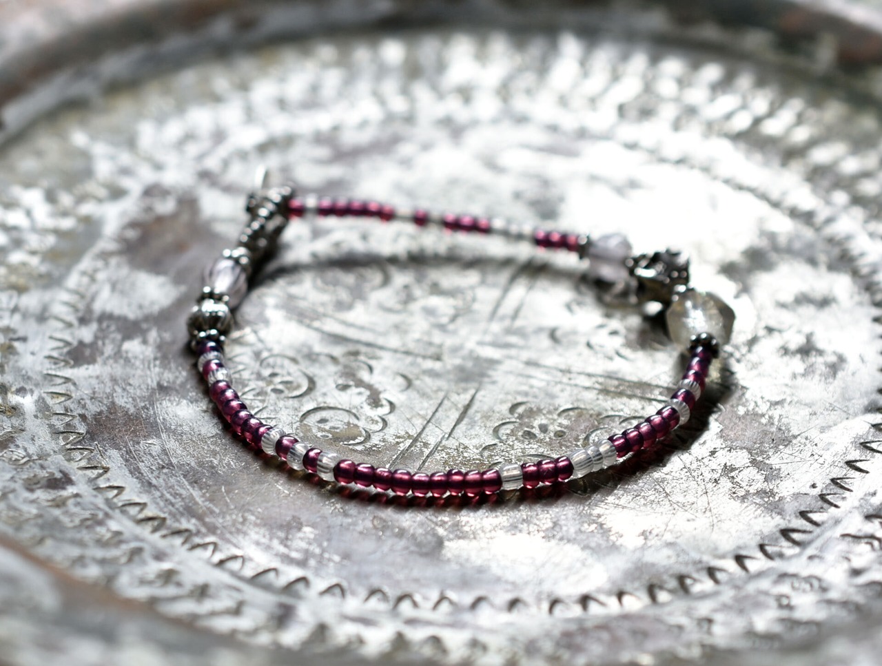 ヴィンテージオーロラチェコビーズとグーズベリー、カレンシルバー、すみれ色フランスヴィンテージビーズのブレス