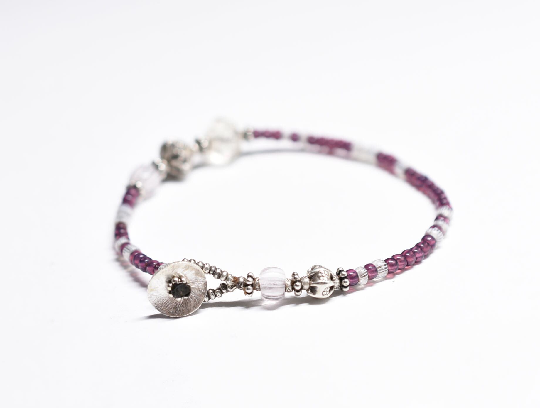 手元に小さなすみれが咲いているような、可憐なブレスです。