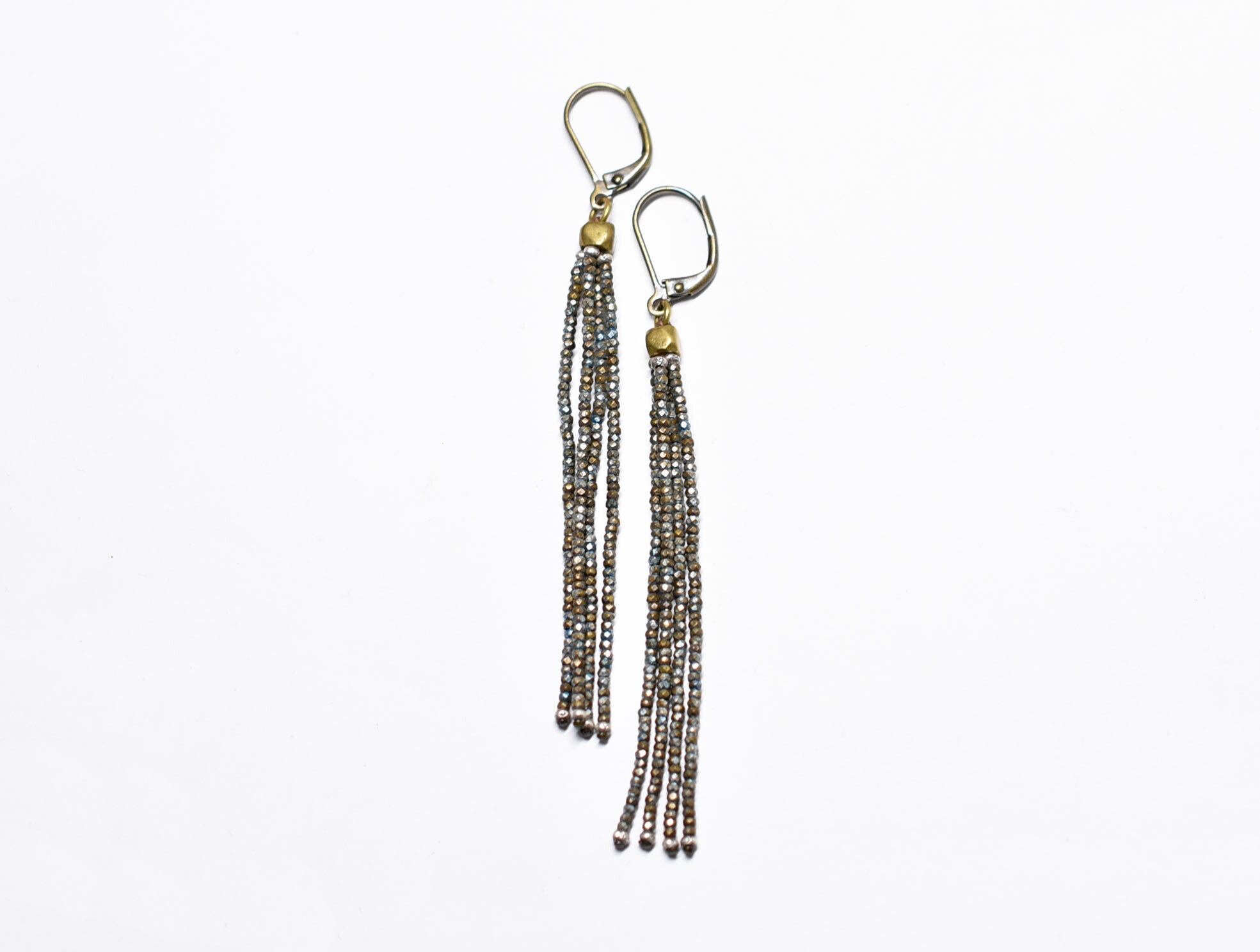 フランスアンティークカットメタルビーズを繋いだ4連のピアスです。