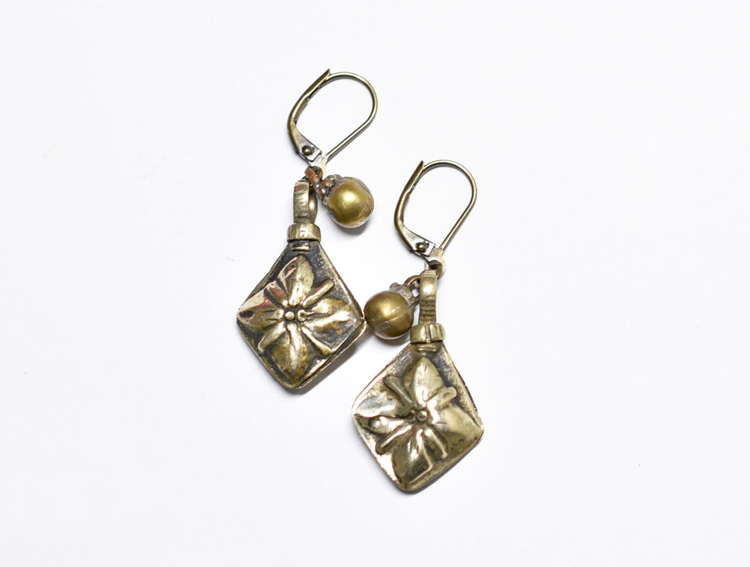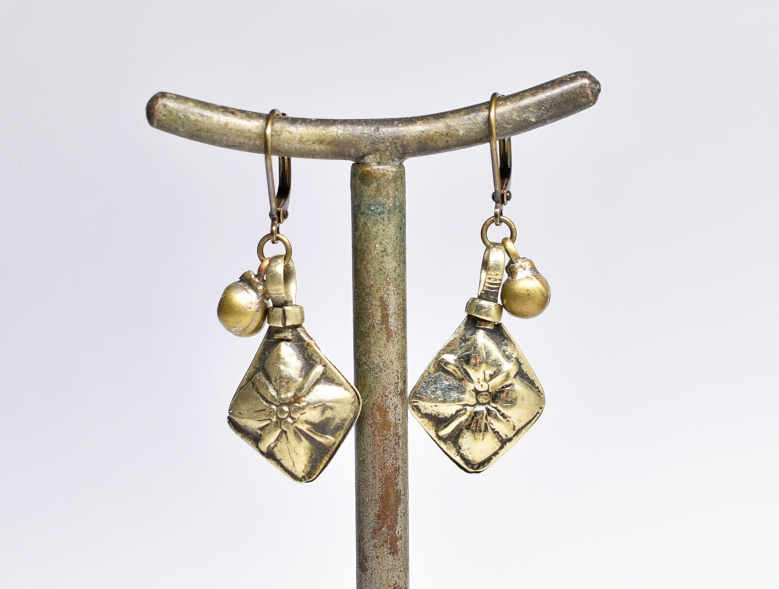 花模様oldアフガンパーツと民族鈴を繋いだピアスです。