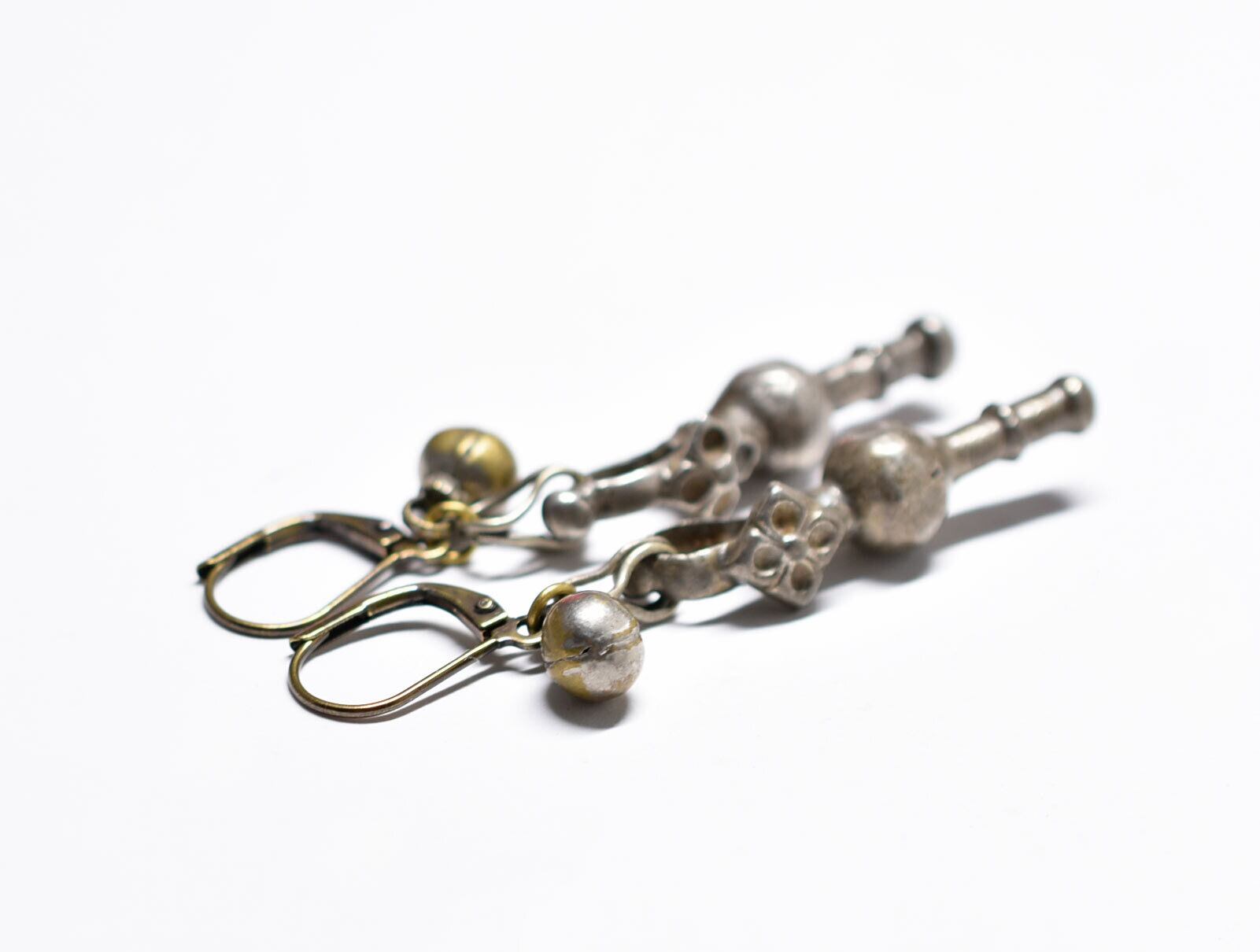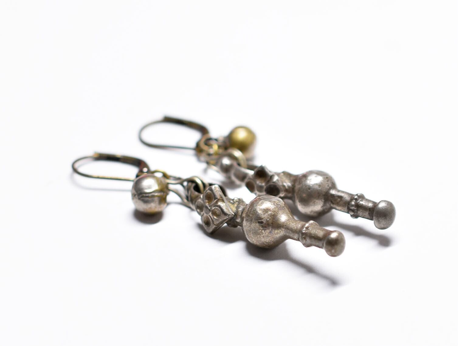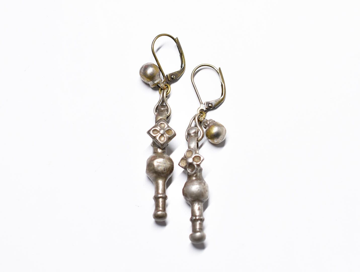 花模様笛の様なoldアフガンメタルパーツツ、民族鈴を繋いだピアスです。