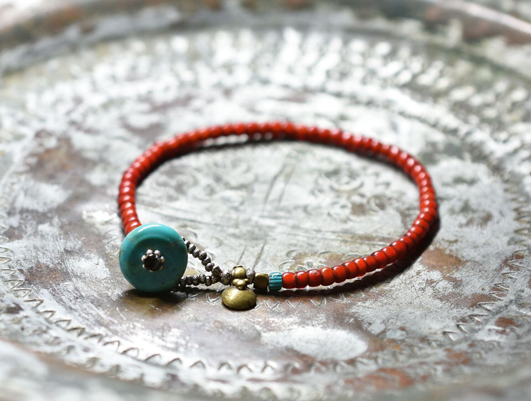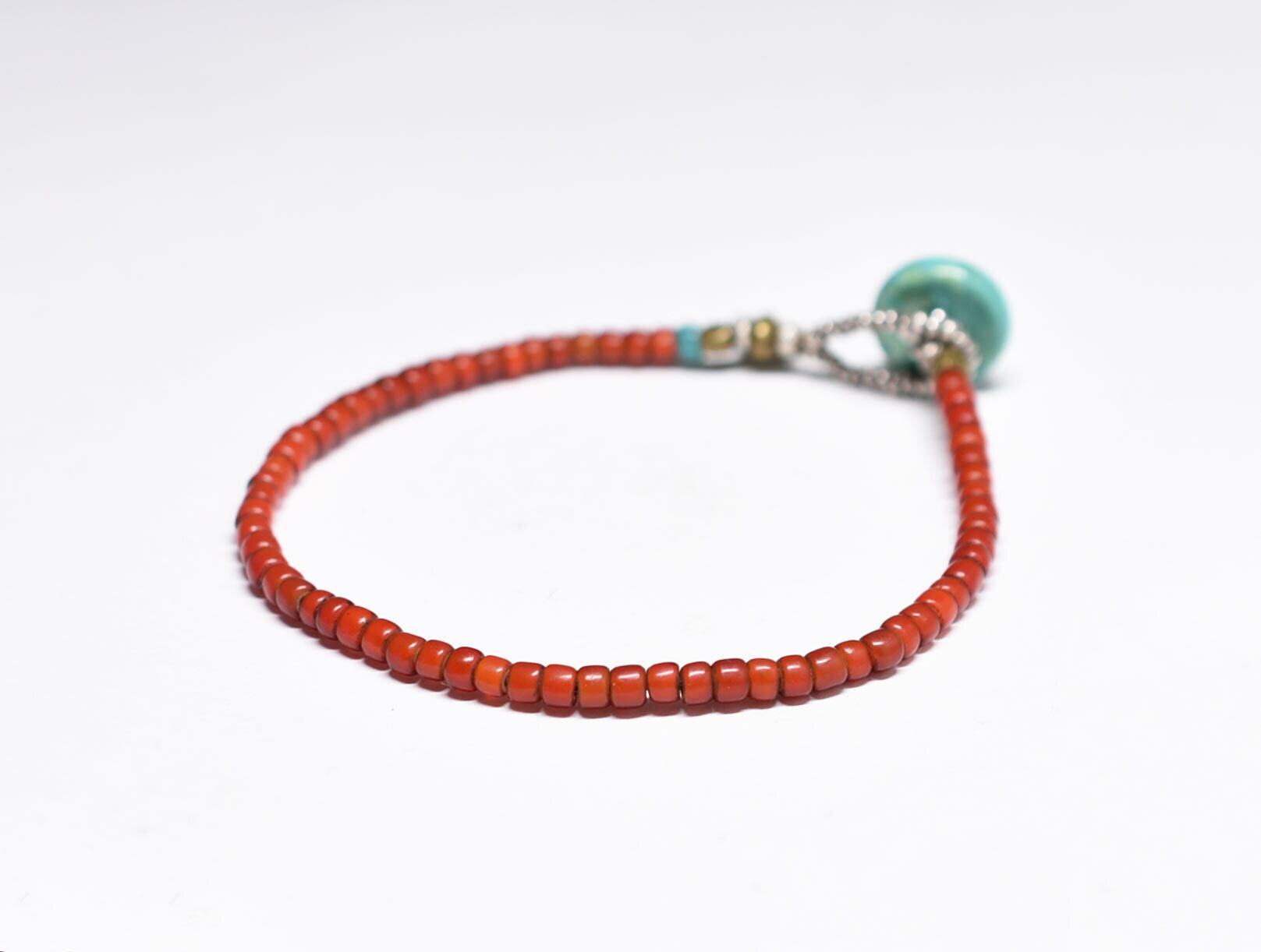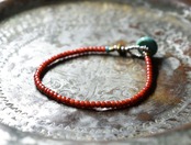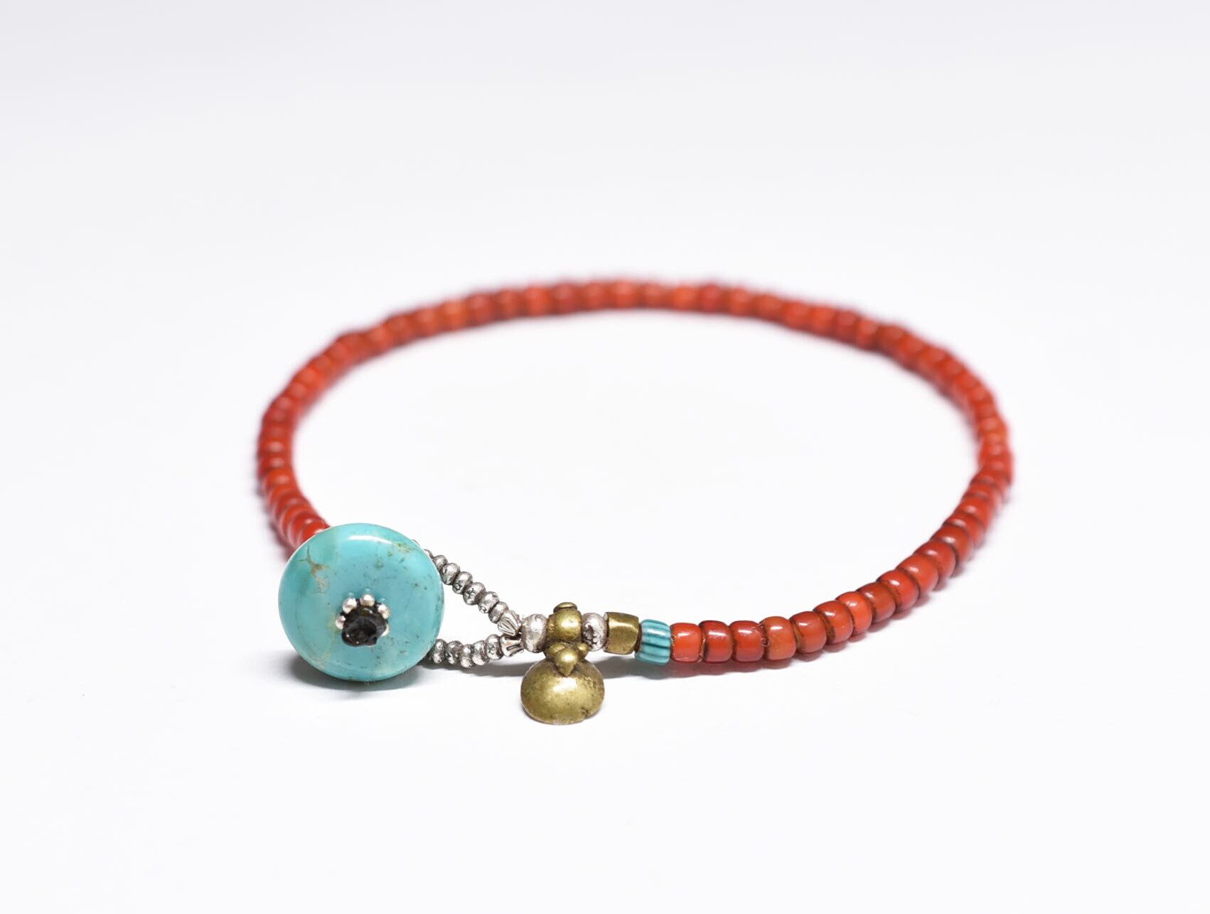 素材:ガラス、oldオリッサブラス、ロウビキ紐、カレンシルバー、シルバー、ターコイズ