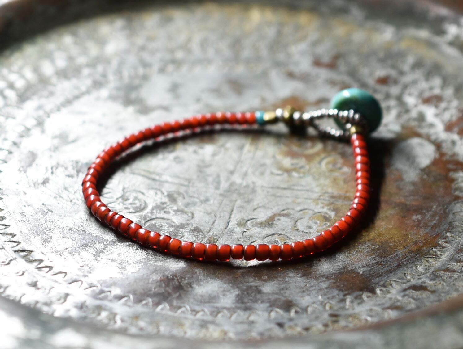 ロウ引き紐で繋いでいますので、最初はやや硬めですが、身に付けて行くうちにしなやかになります。