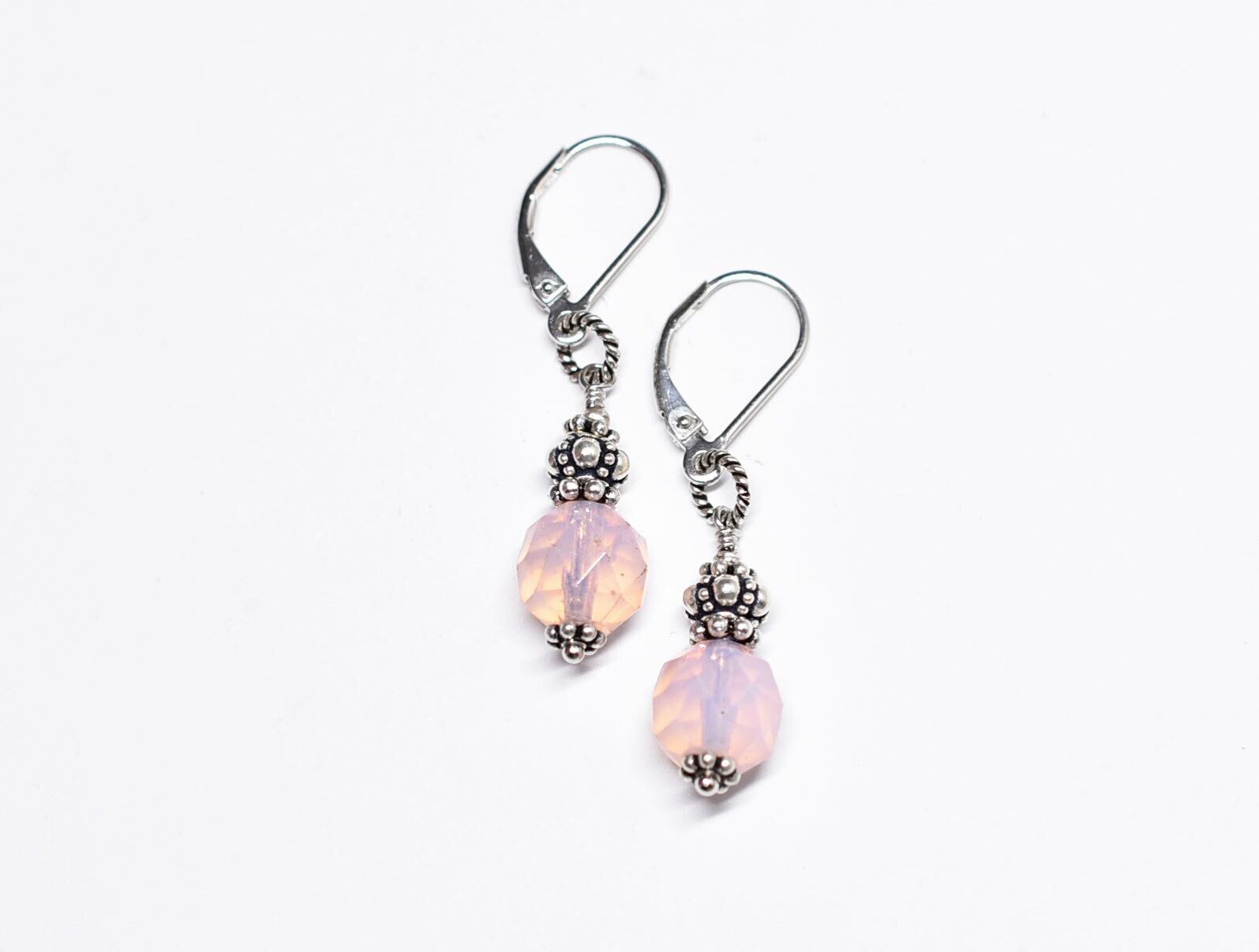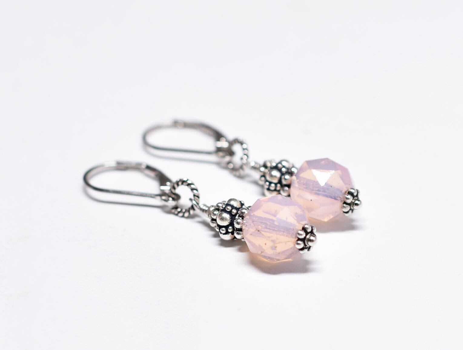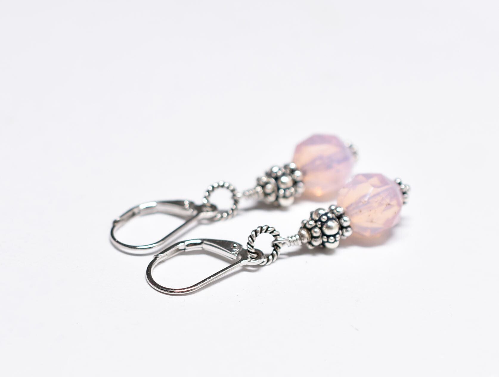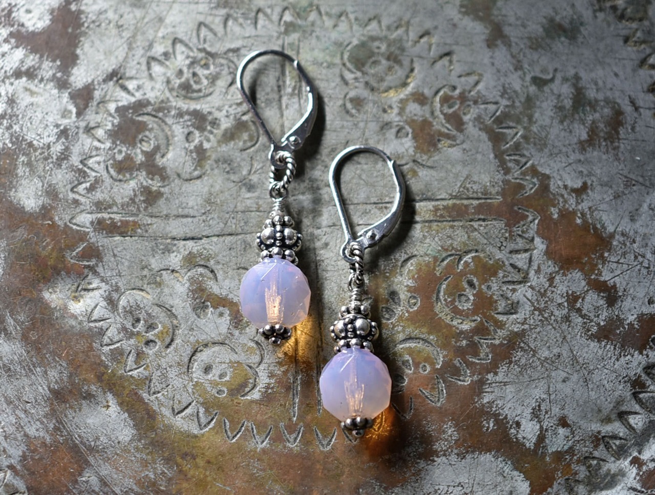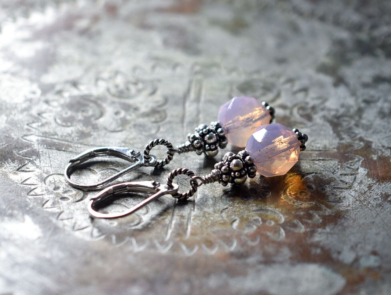 ピンクオパールヴィンテージボヘミアビーズとシルバービーズのピアス