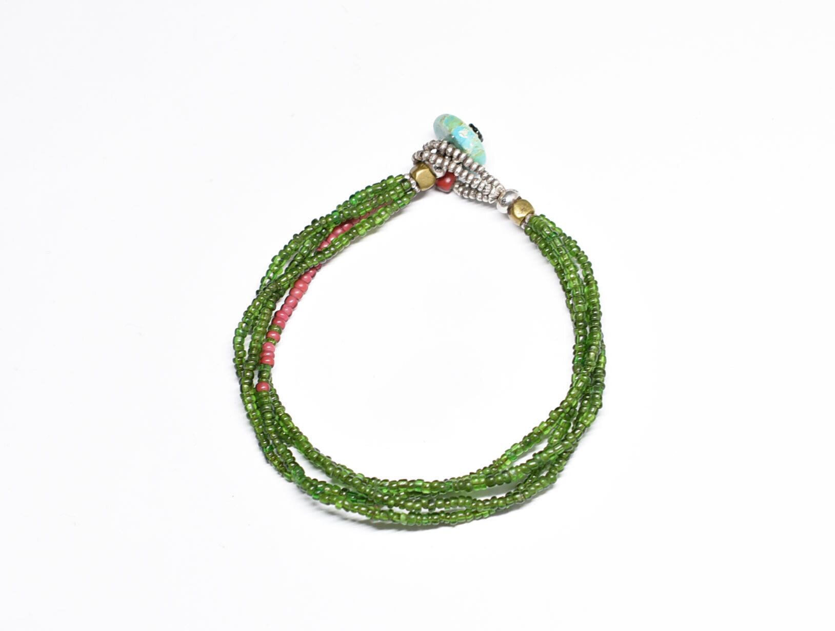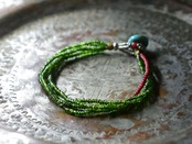 アンティークグリーンシードビーズと金赤ホワイトハーツを繋いだ4連ブレスです。