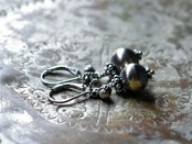 ナバホパールとインドシルバー鈴のコロンとしたピアス