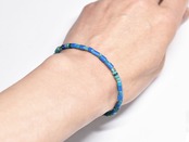 留め金部分に一粒入れた半透明なビーズ、ブレスの一部に入れた半透明なビーズはインドパシフィックビーズです。