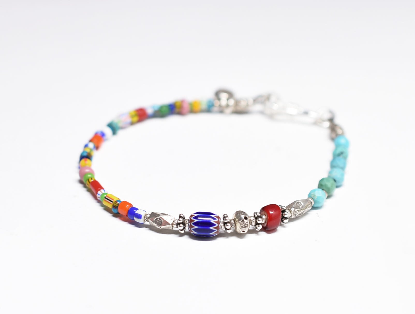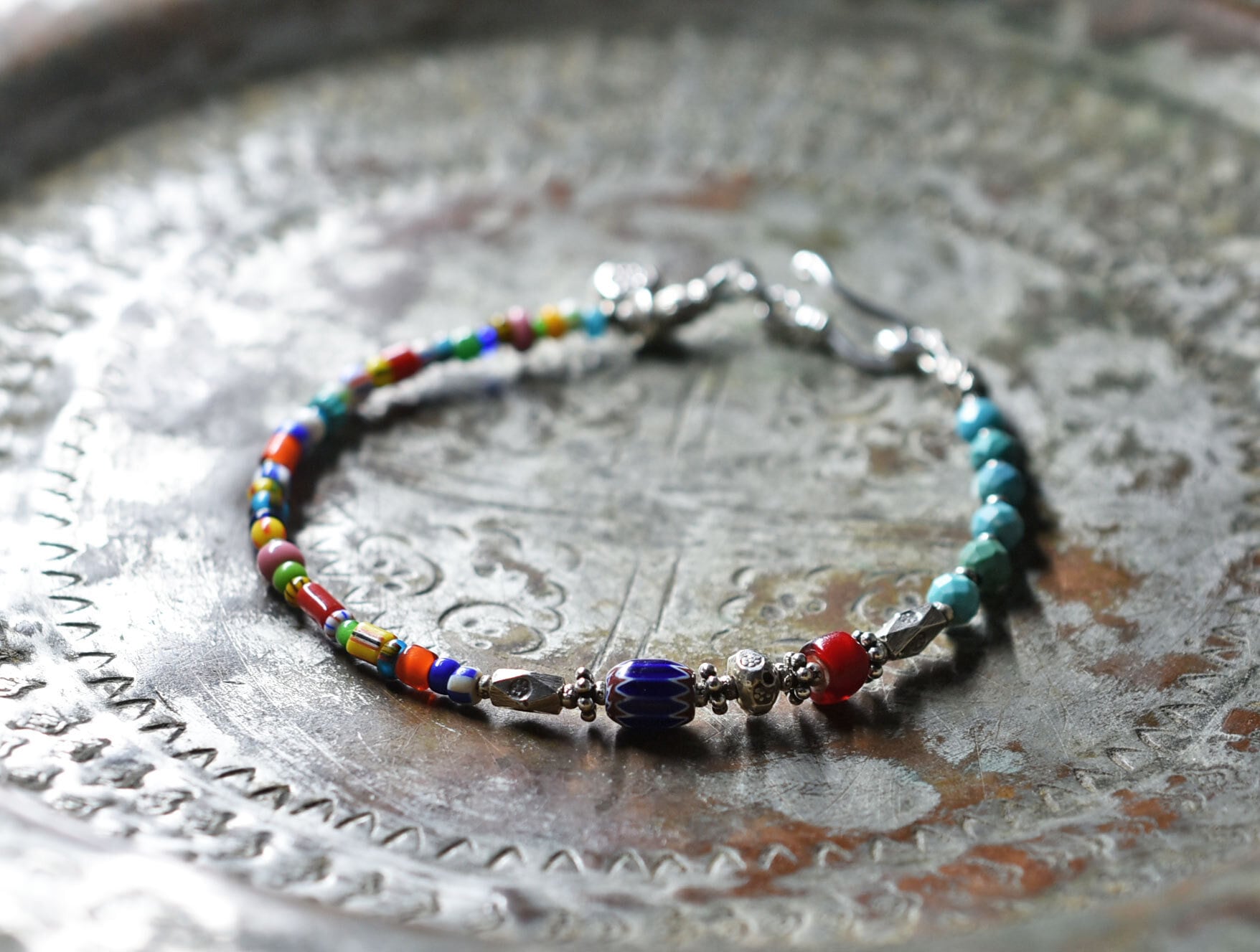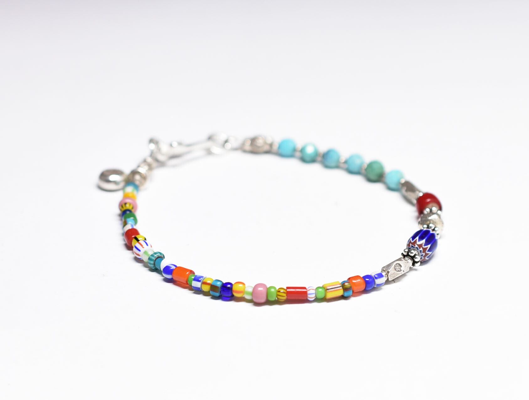 シェブロンビーズとクリスマスビーズとターコイズ、カレンシルバーを繋いだカラフルなブレスです。