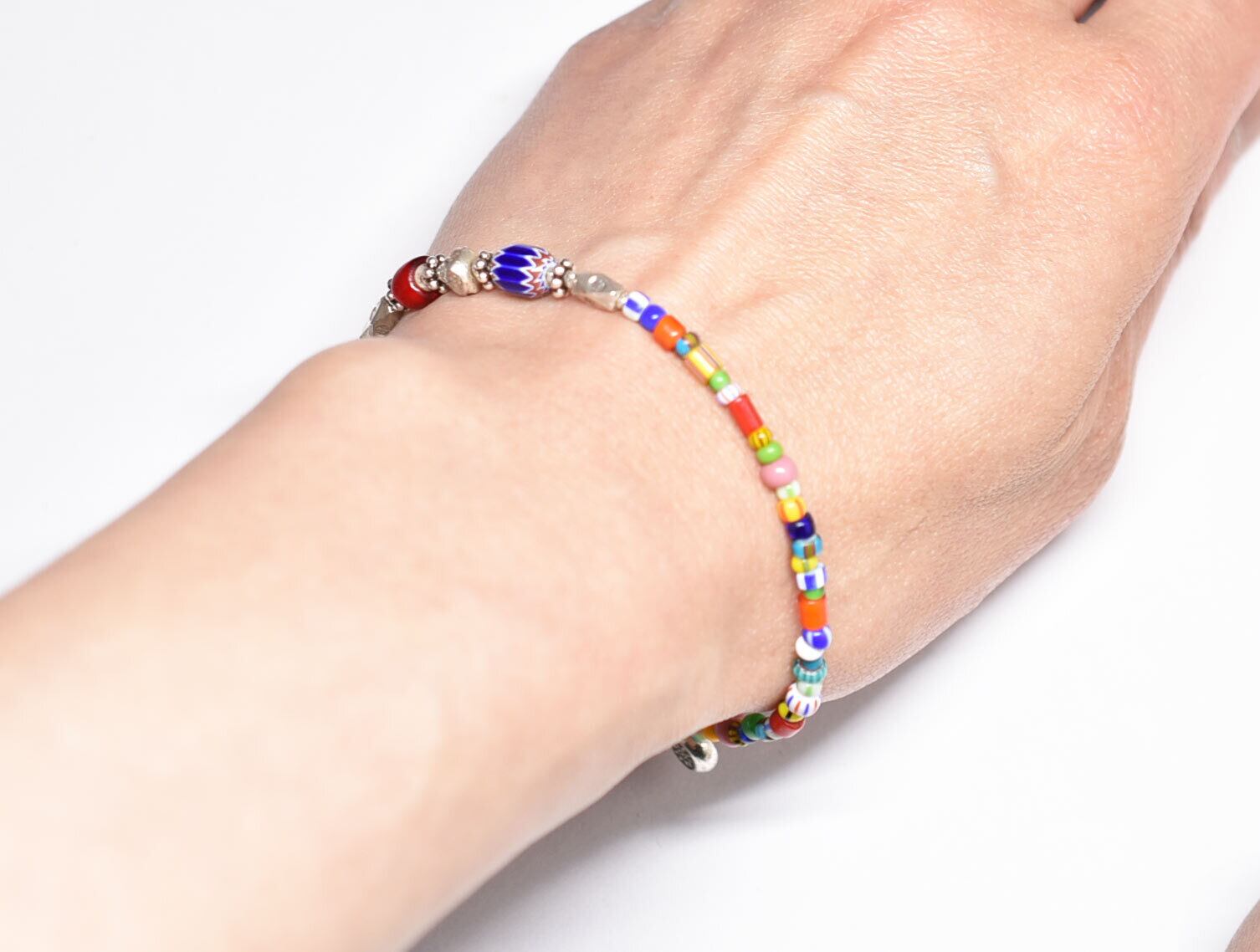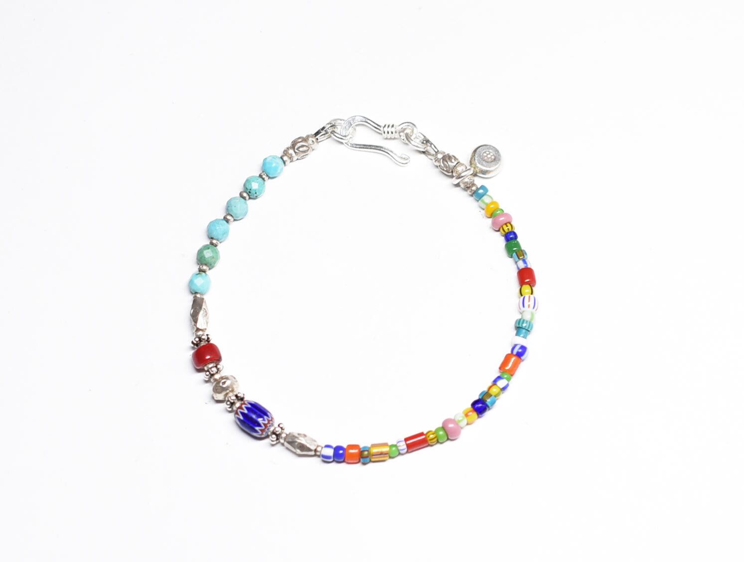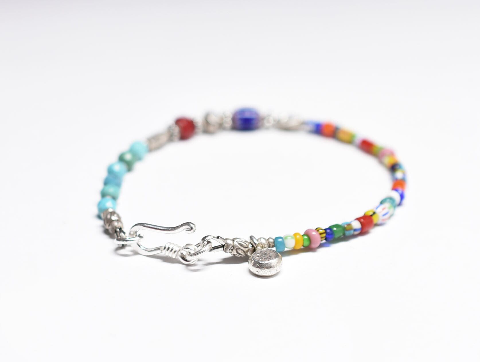 シェブロンビーズとクリスマスビーズとターコイズ、カレンシルバーを繋いだカラフルなブレスです。