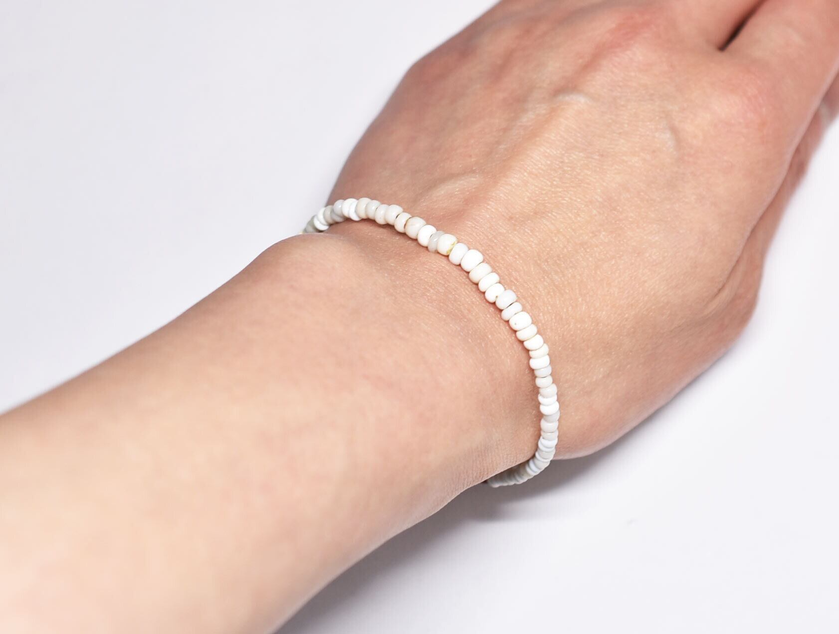 シンプルながらも、ビーズ一粒一粒が楽しめるブレスです。