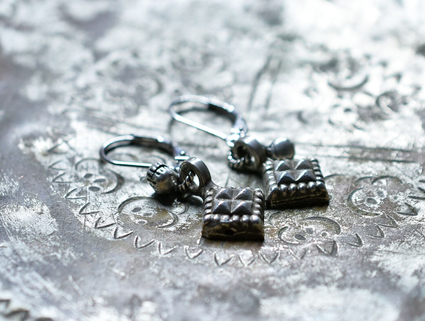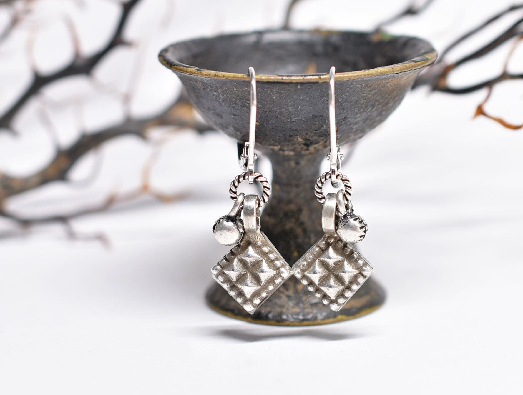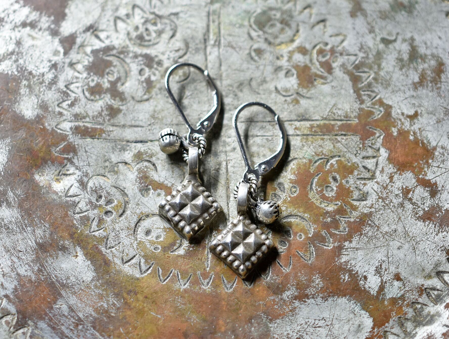 スクエアoldアフガンシルバーと小さな鈴のピアス
