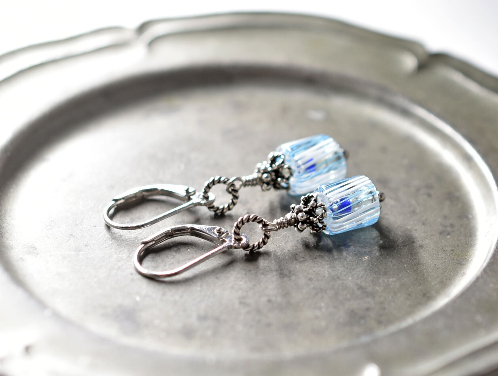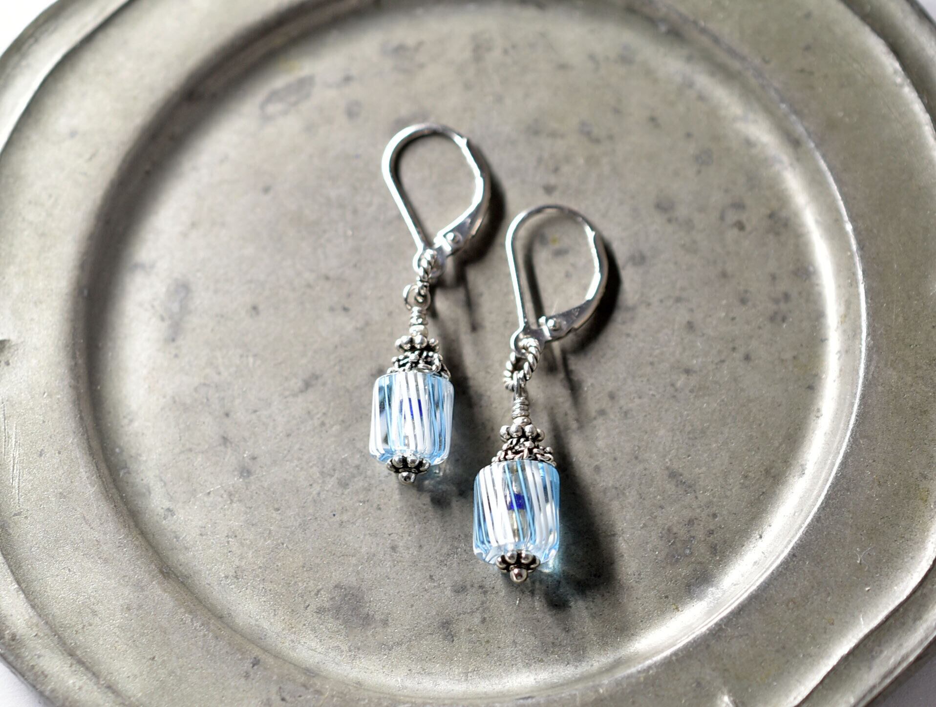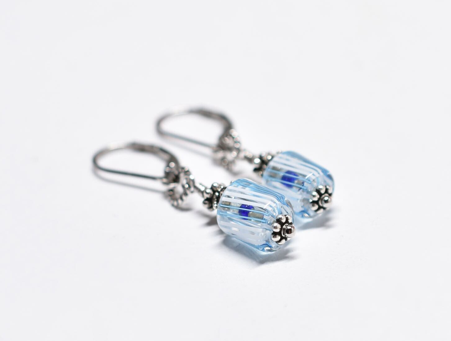 ベビーブルー×ホワイトアメリカストライプビーズの一粒ピアス