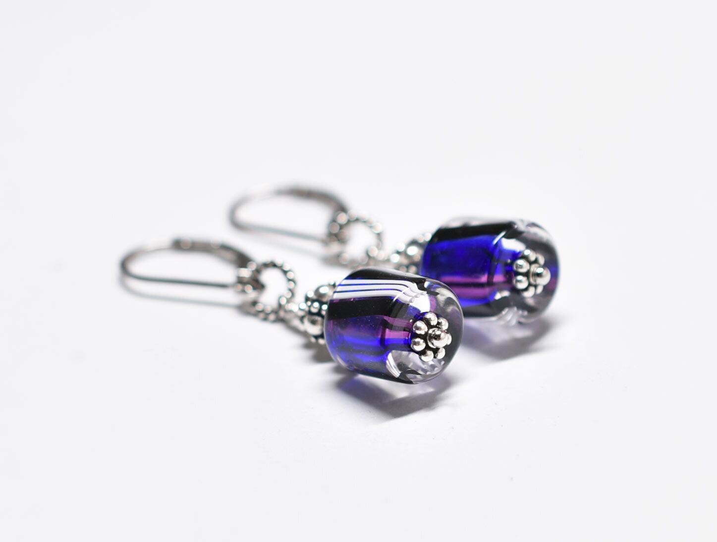 ブルー×パープルアメリカストライプビーズとシルバービーズを繋いだピアスです。