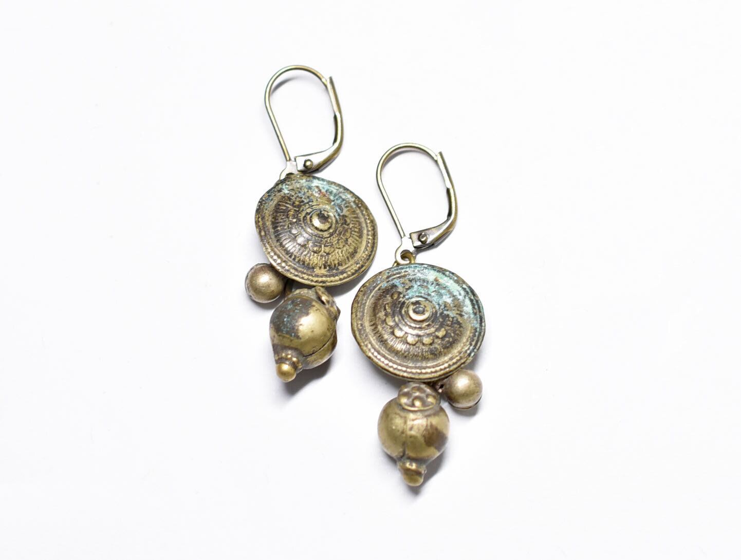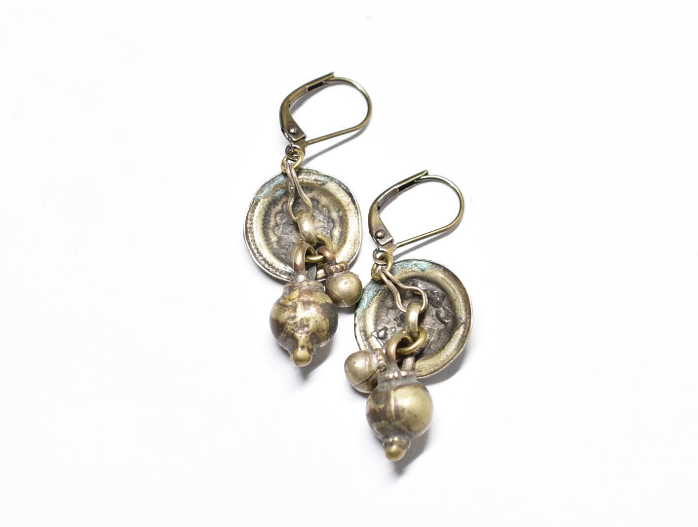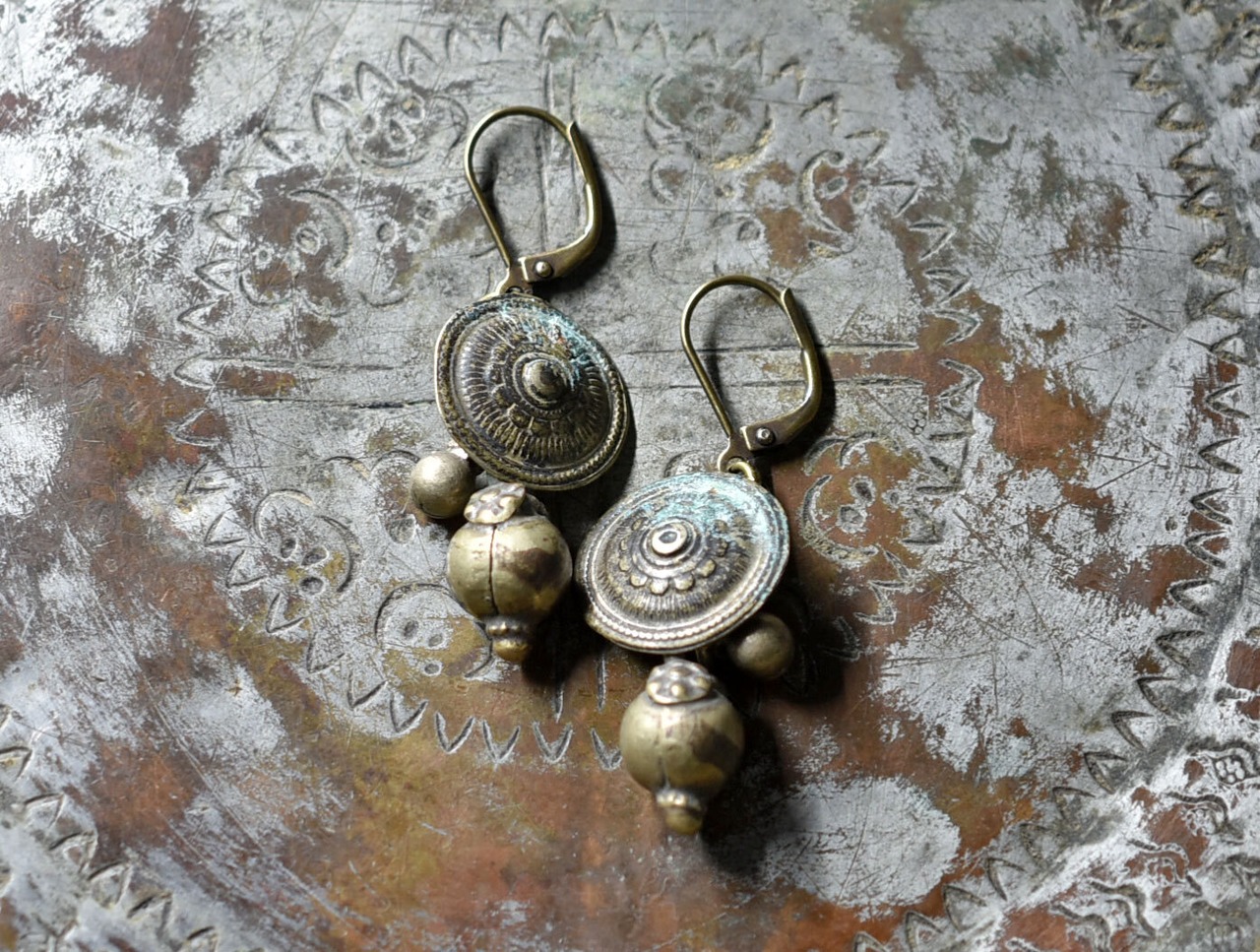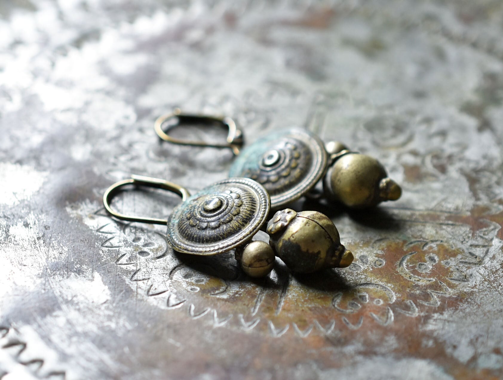 魔法陣の様なoldアフガンメタルパーツと2種類の民族鈴のピアス