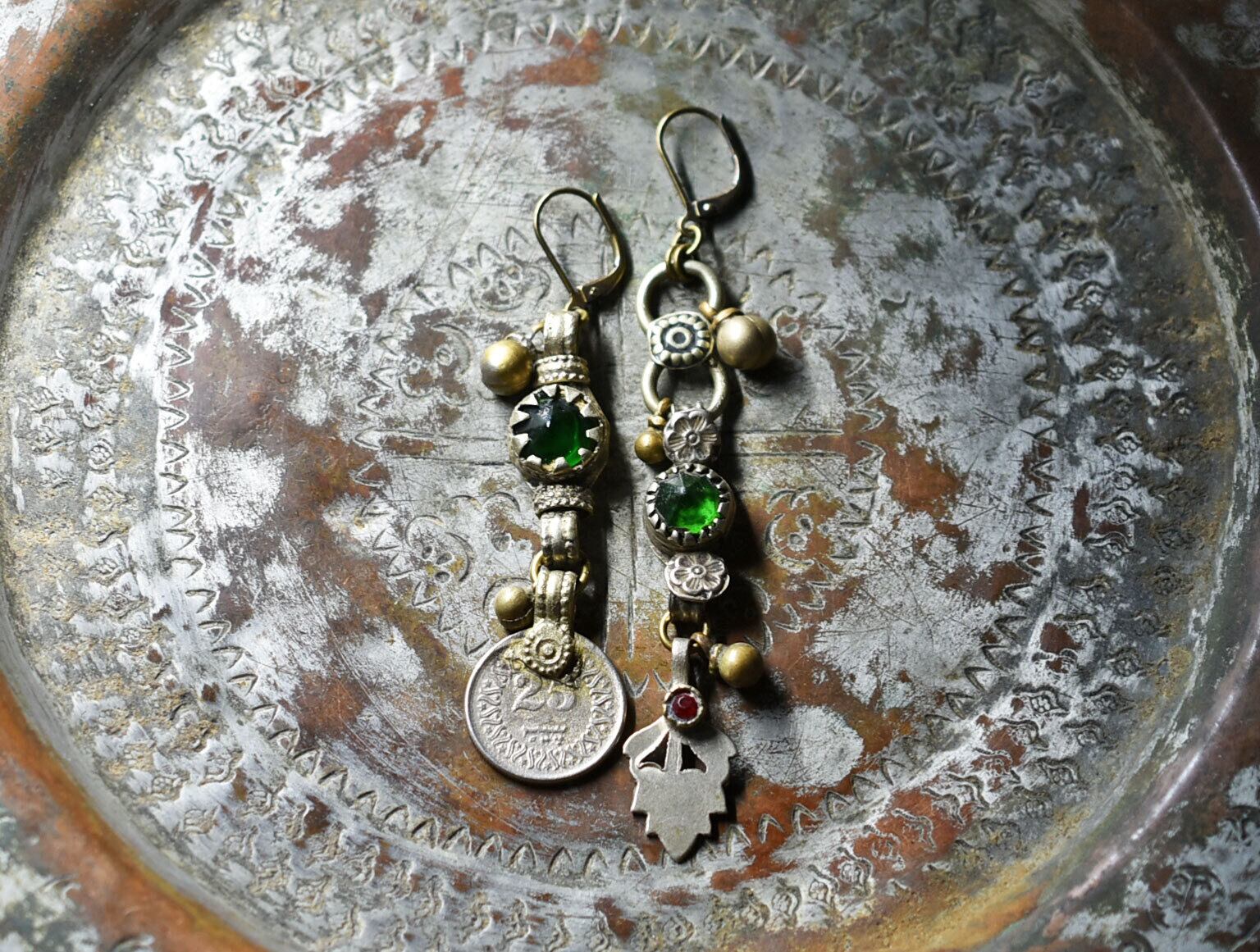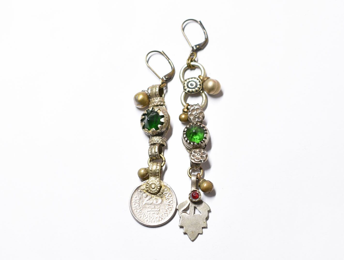 oldコインとアフガンメタル、民族鈴のアンシメトリーピアス