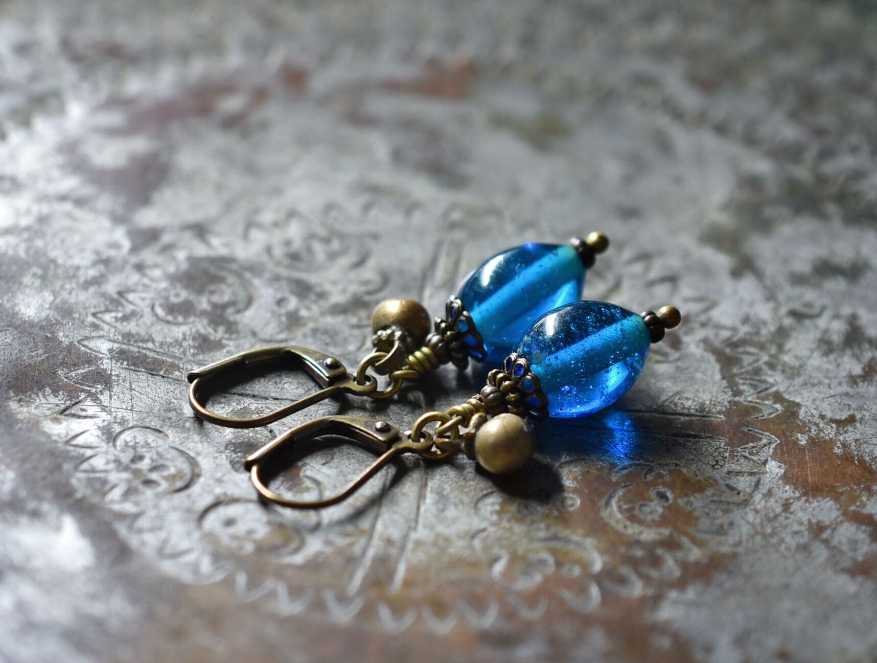 コバルトブルーのビーズはチェコ産のヴィンテージビーズです。