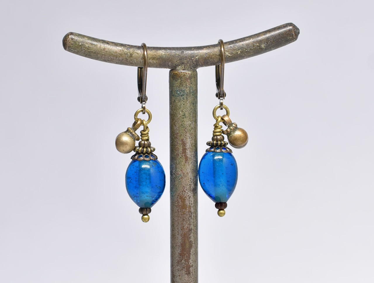 コバルトヴィンテージビーズと民族鈴を繋いだピアスです。