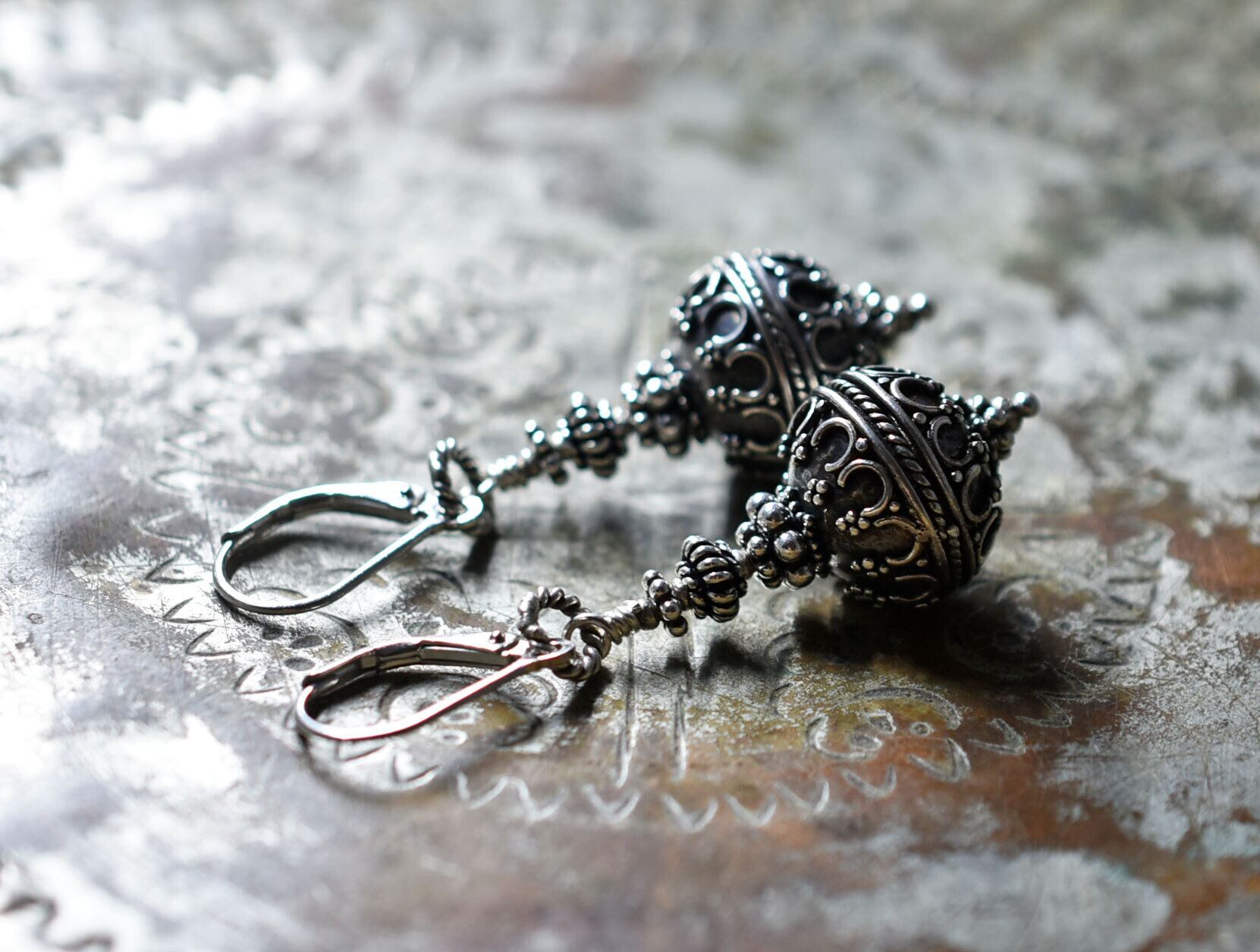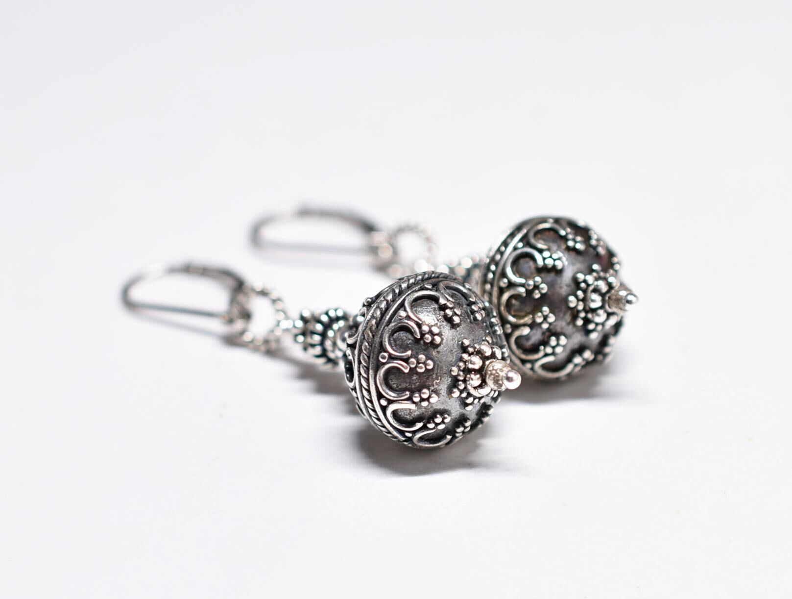 繊細な細工が施されたメインのビーズはバリ島から届いたバリシルバーのビーズです。