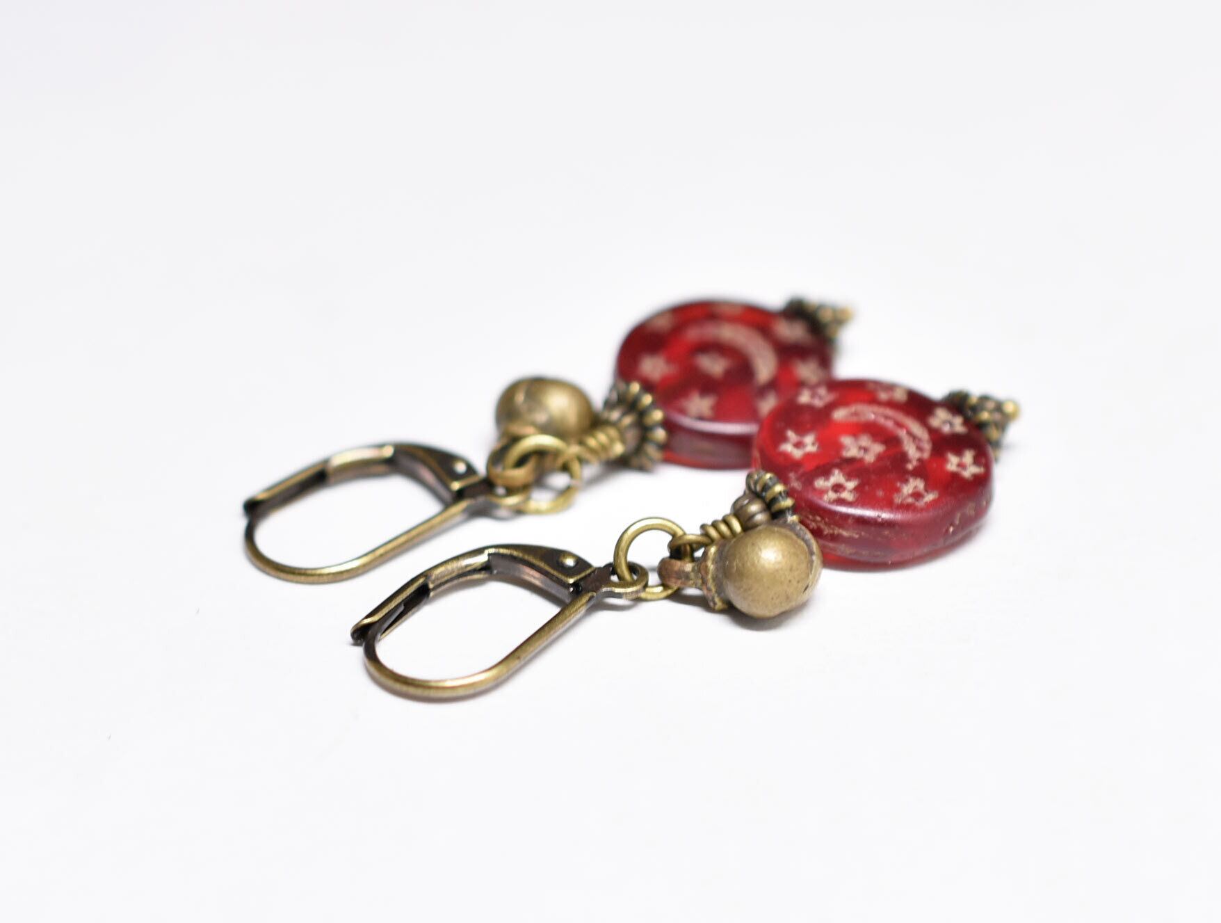 月と星の模様が施された聖者のビーズと小さな鈴を繋いだピアスです。