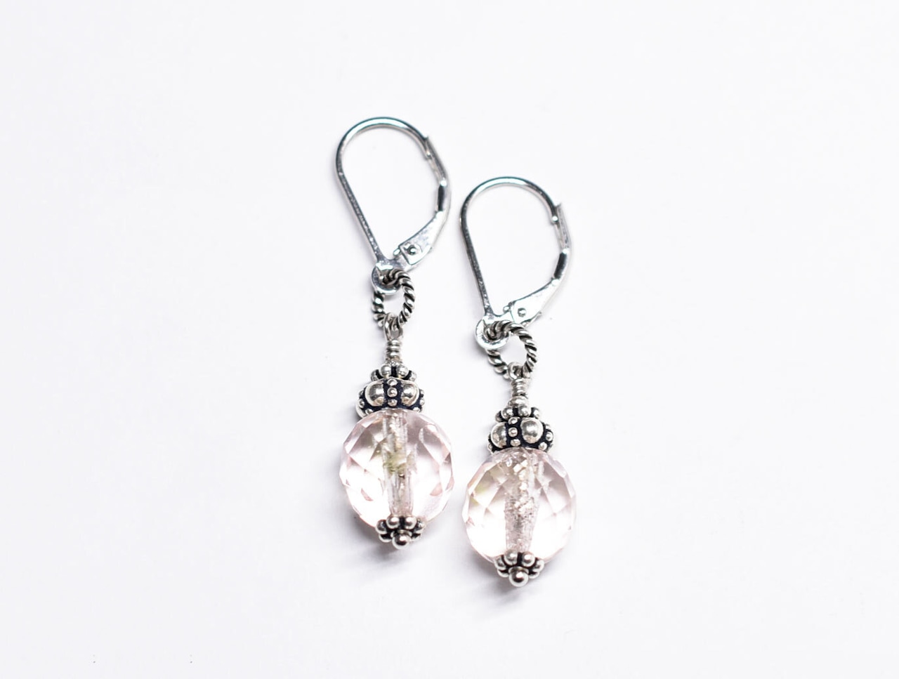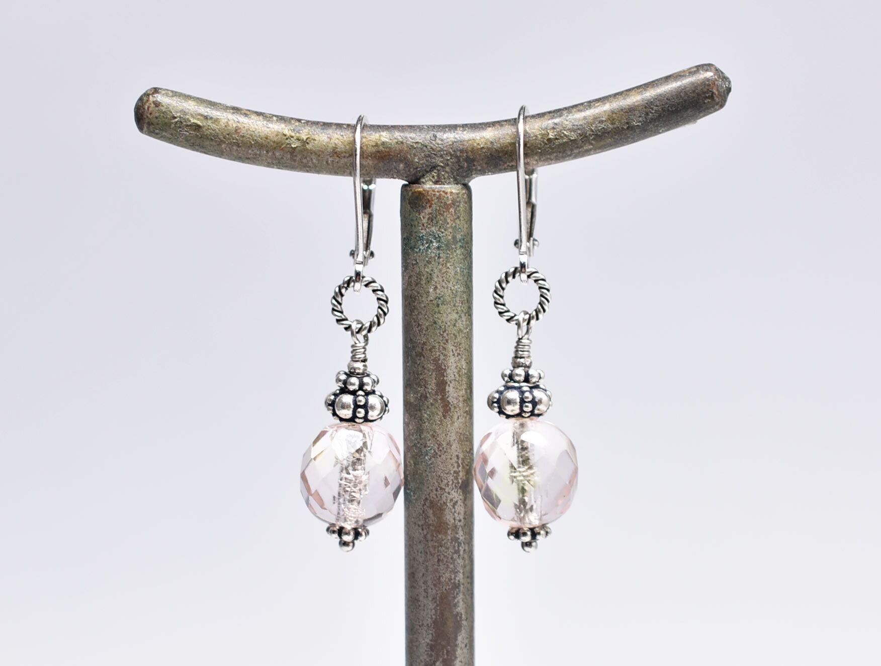 ウランガラスの上部のぷっくりとしたシルバービーズは一つ一つ手作りされているものです。