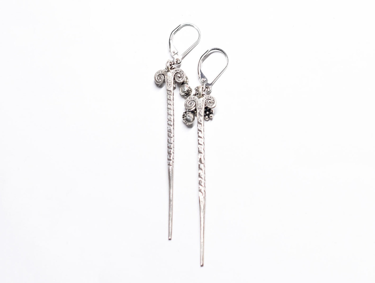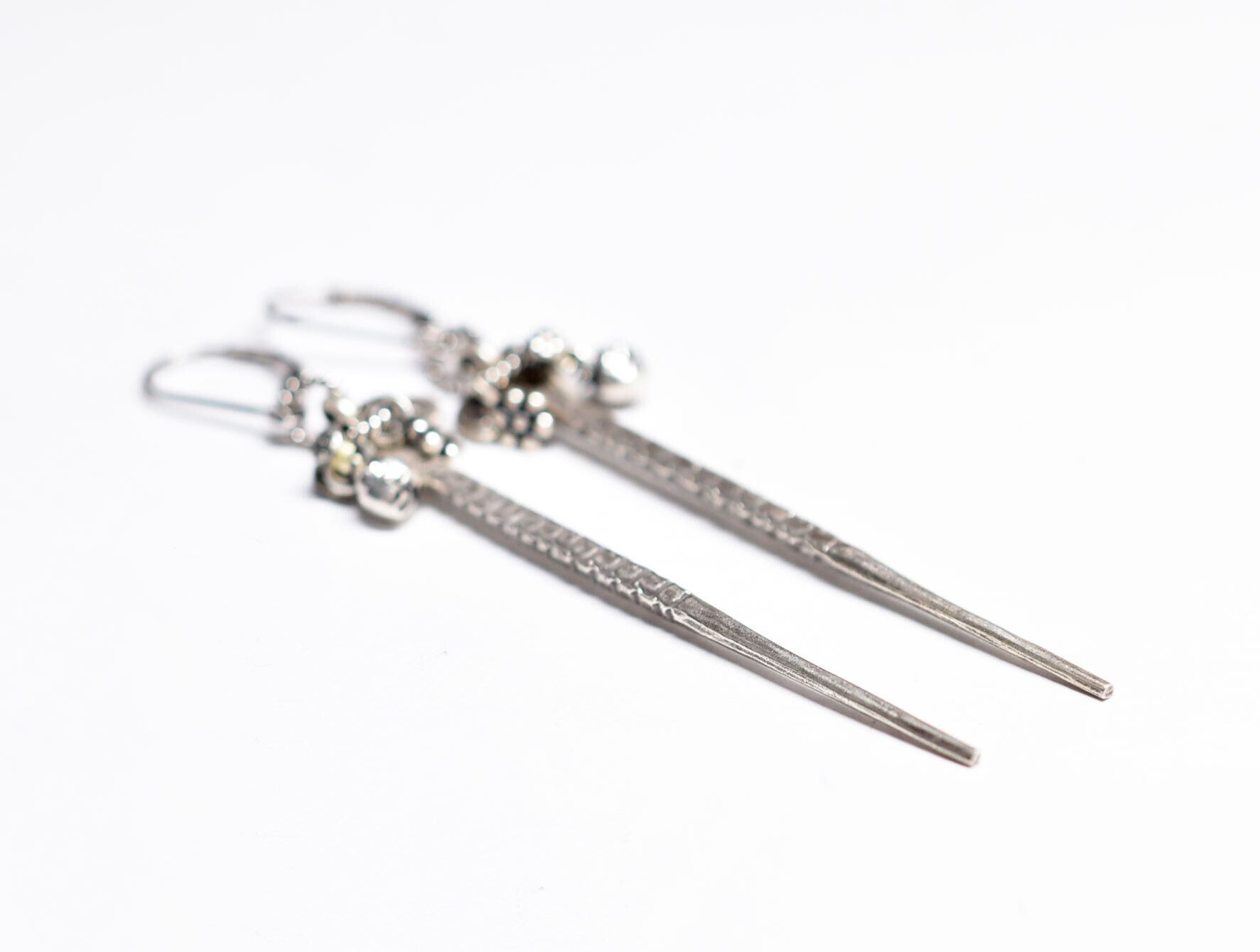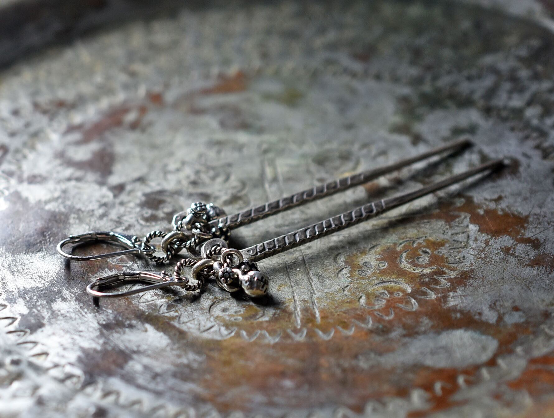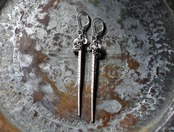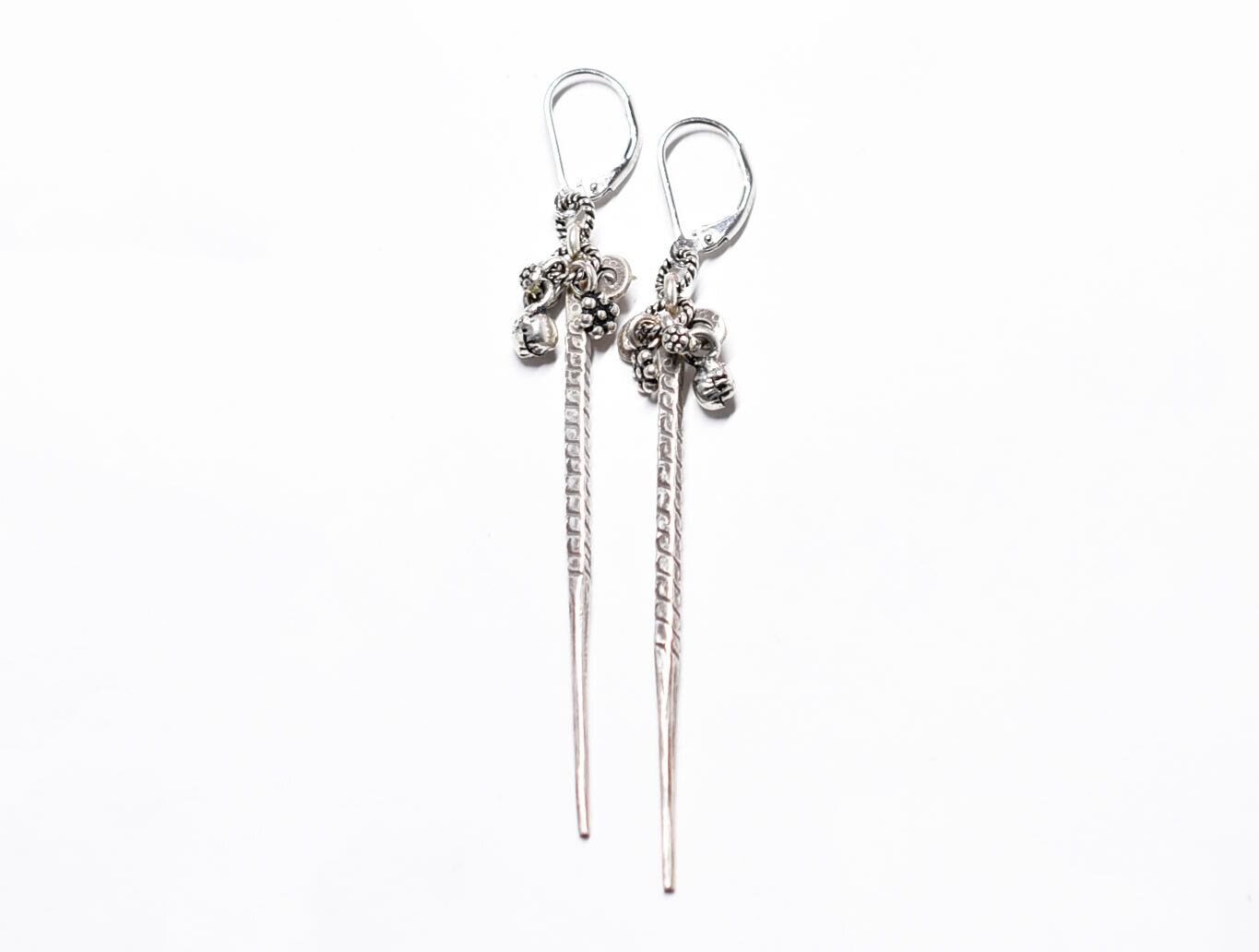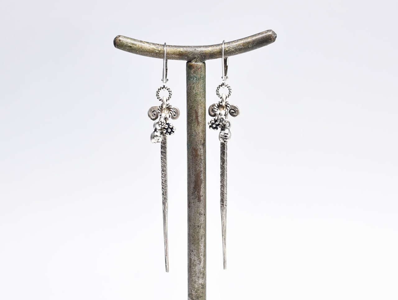 楔カレンシルバーとインドシルバーの鈴シルバー小花を繋いだピアスです。
