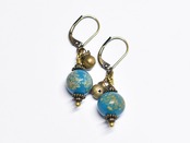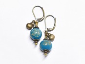 渋浅葱色japanヴィンテージビーズと民族鈴を繋いだピアスです。