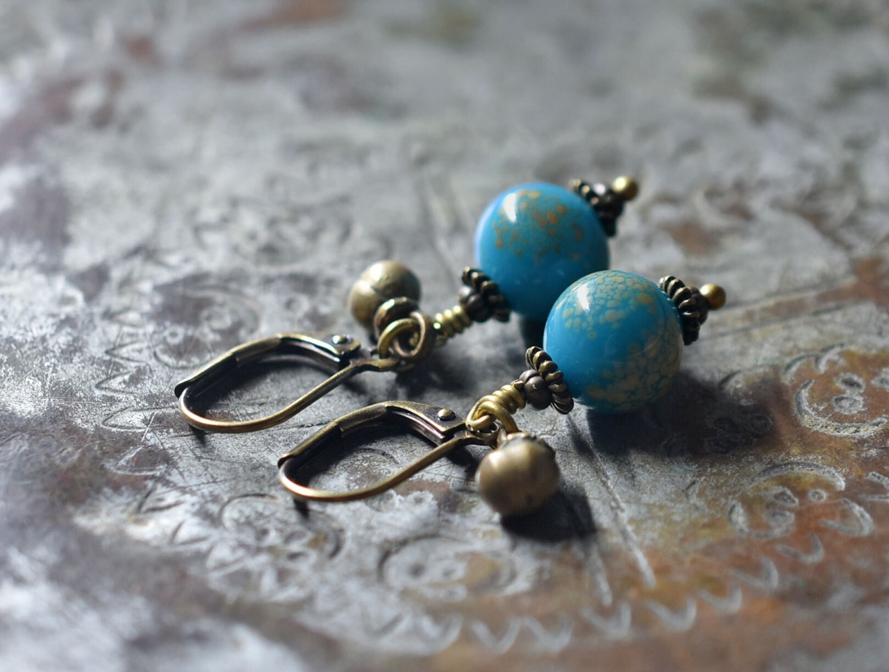 渋浅葱色japanヴィンテージビーズと民族鈴のピアス