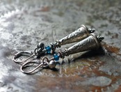 oldアフガンメタルとインディゴブルーアンティークビーズ、インドシルバー鈴のピアス