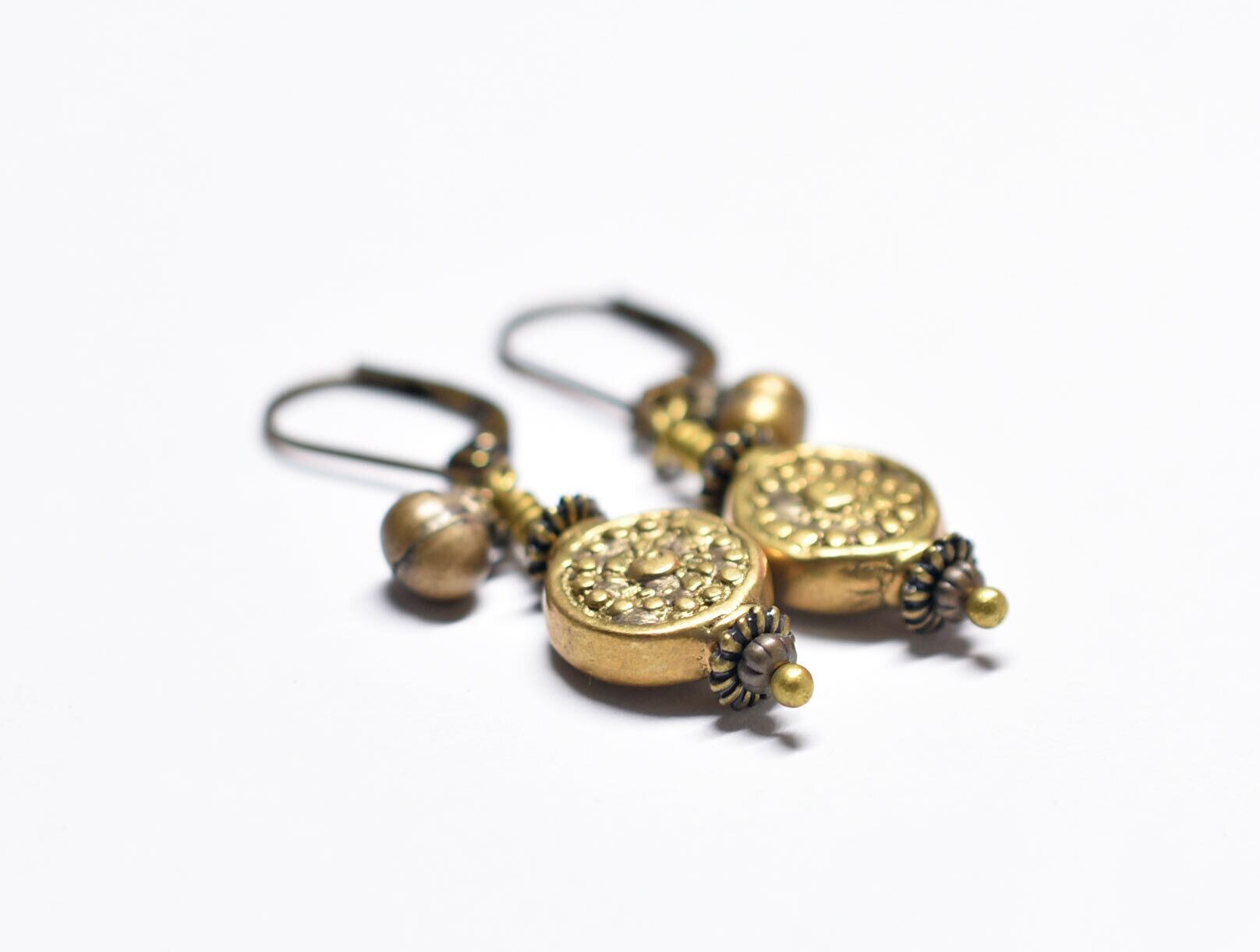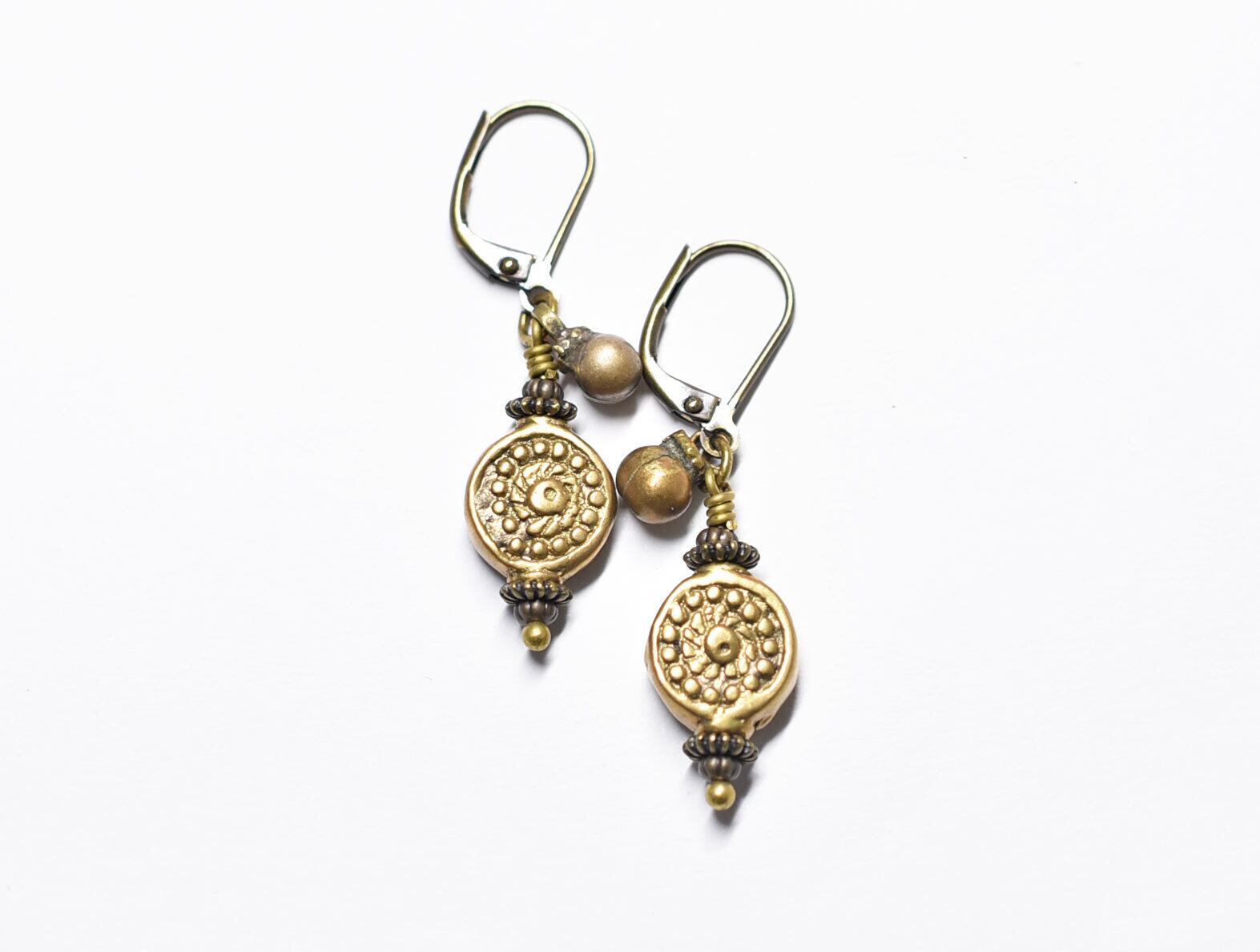 コインの様なインドブラス、小さな民族鈴のピアス