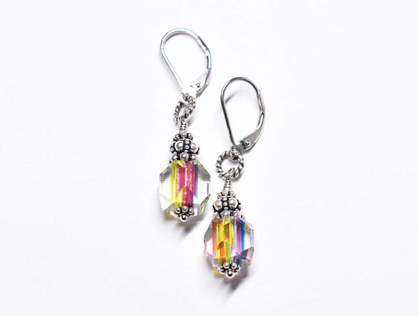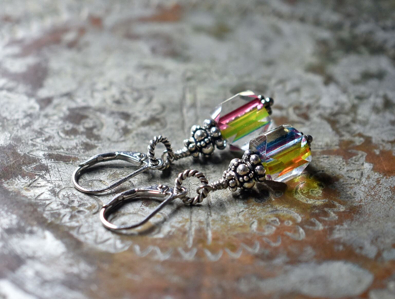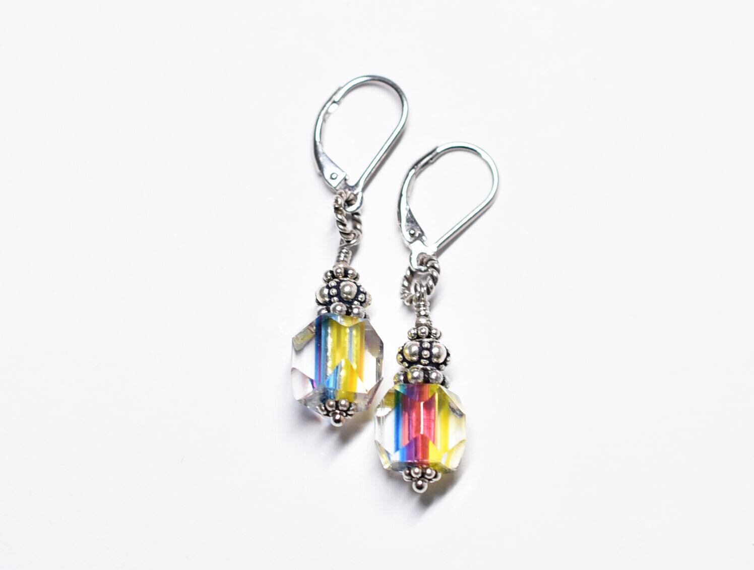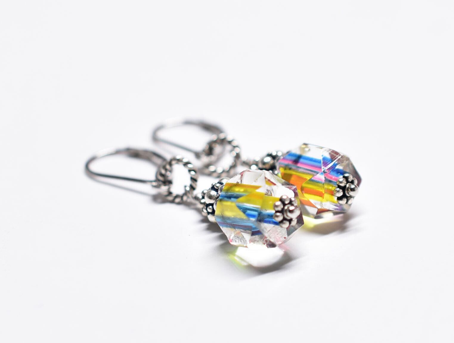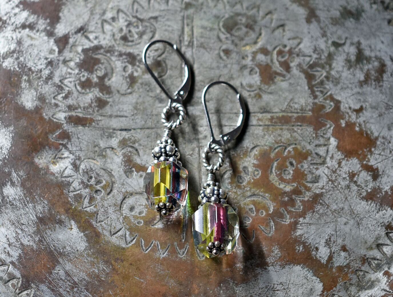 カットが美しいヴィンテージビーズとシルバービーズを繋いだピアスです。
