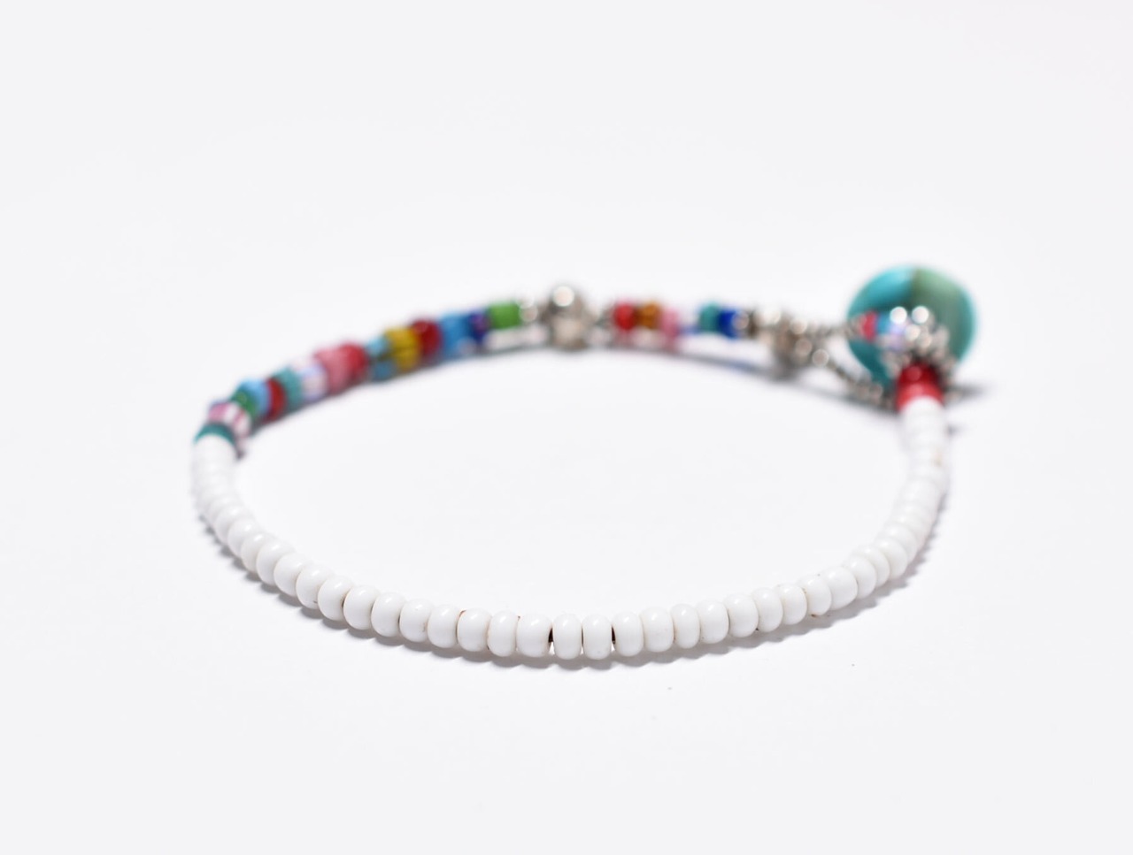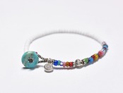 ホワイト&多彩アンティークヴェネチアビーズのブレス(ターコイズ留め金)