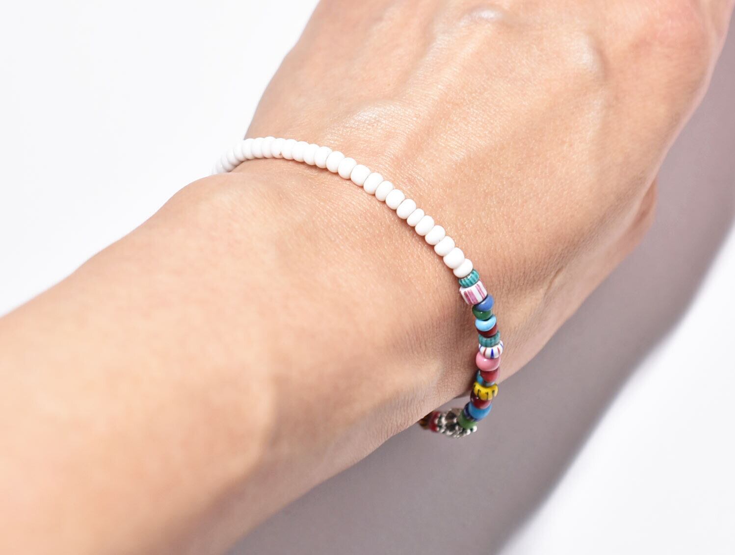 ホワイト&多彩アンティークヴェネチアビーズなどを繋いだブレスです。