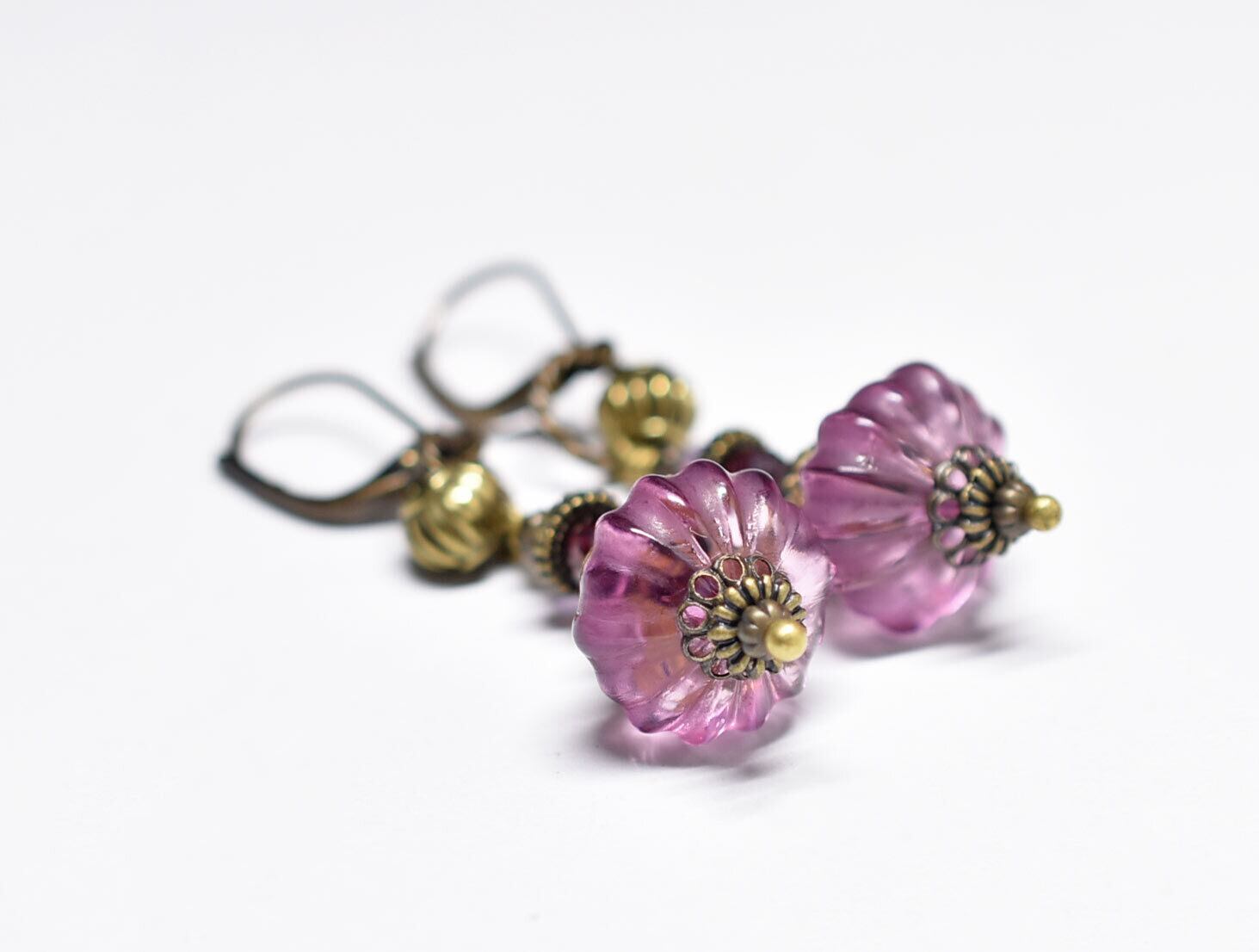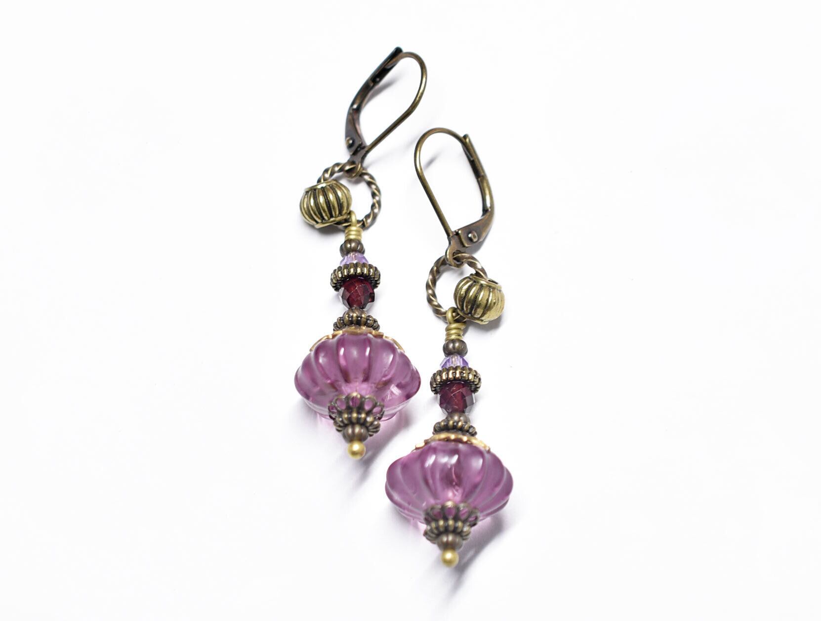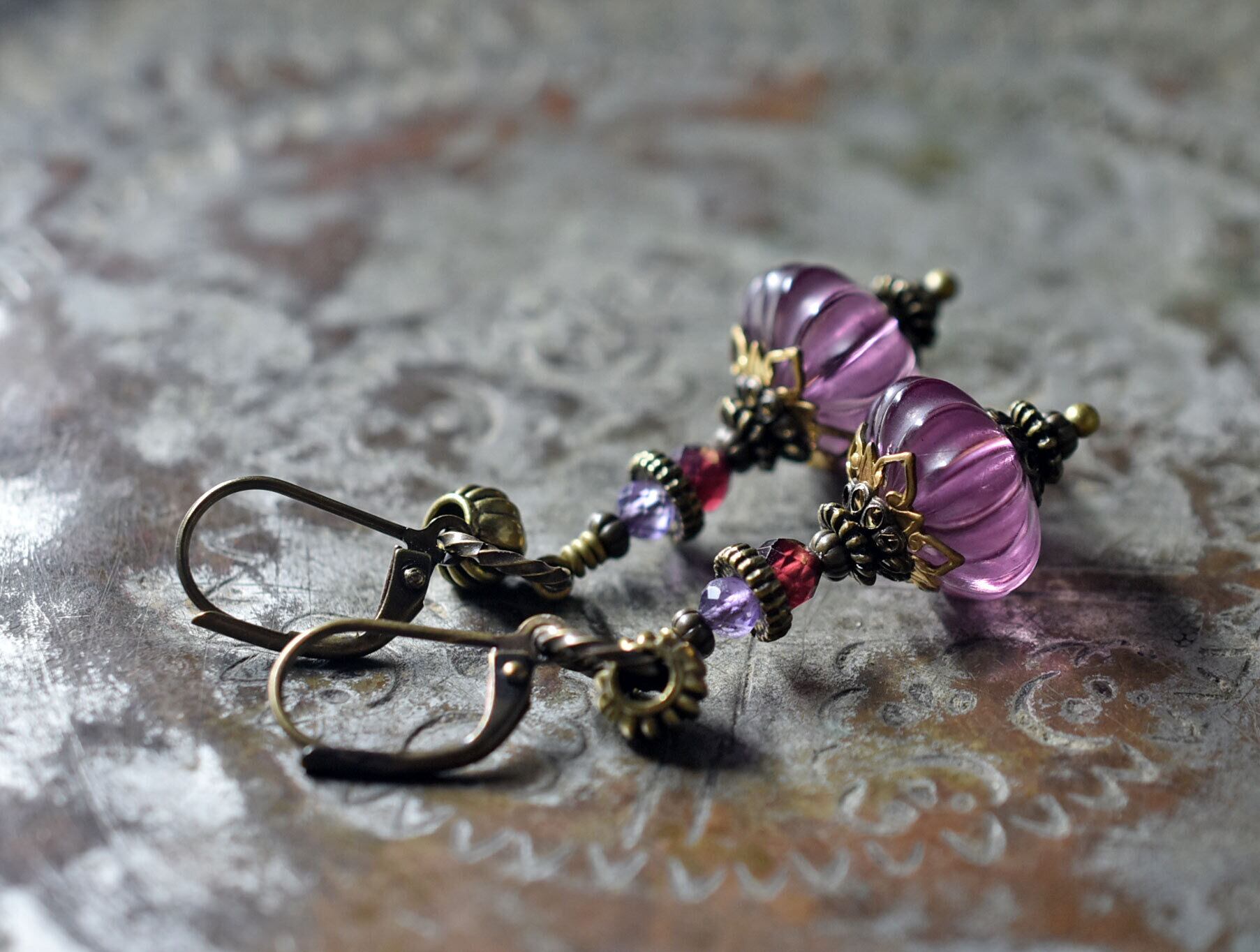 古代紫色japanヴィンテージビーズとガーネット、アメジストのリングピアス