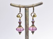 古代紫色japanヴィンテージビーズとガーネット、アメジストを少し大き目なリングへ繋いだピアスです。