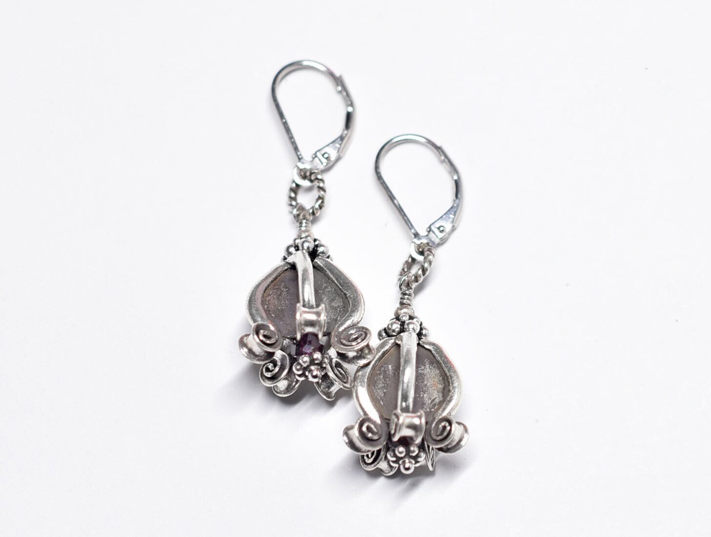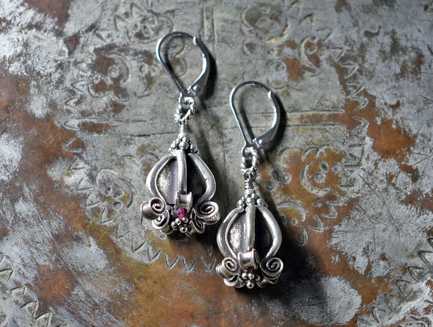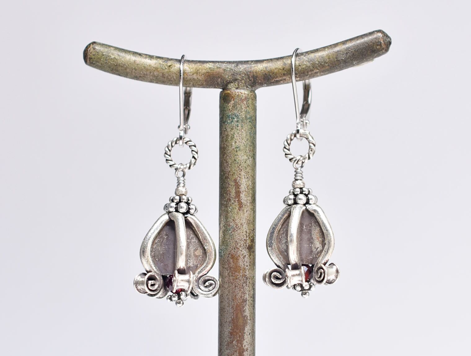 ドークラックカレンシルバー、ガーネットを繋いだピアスです。