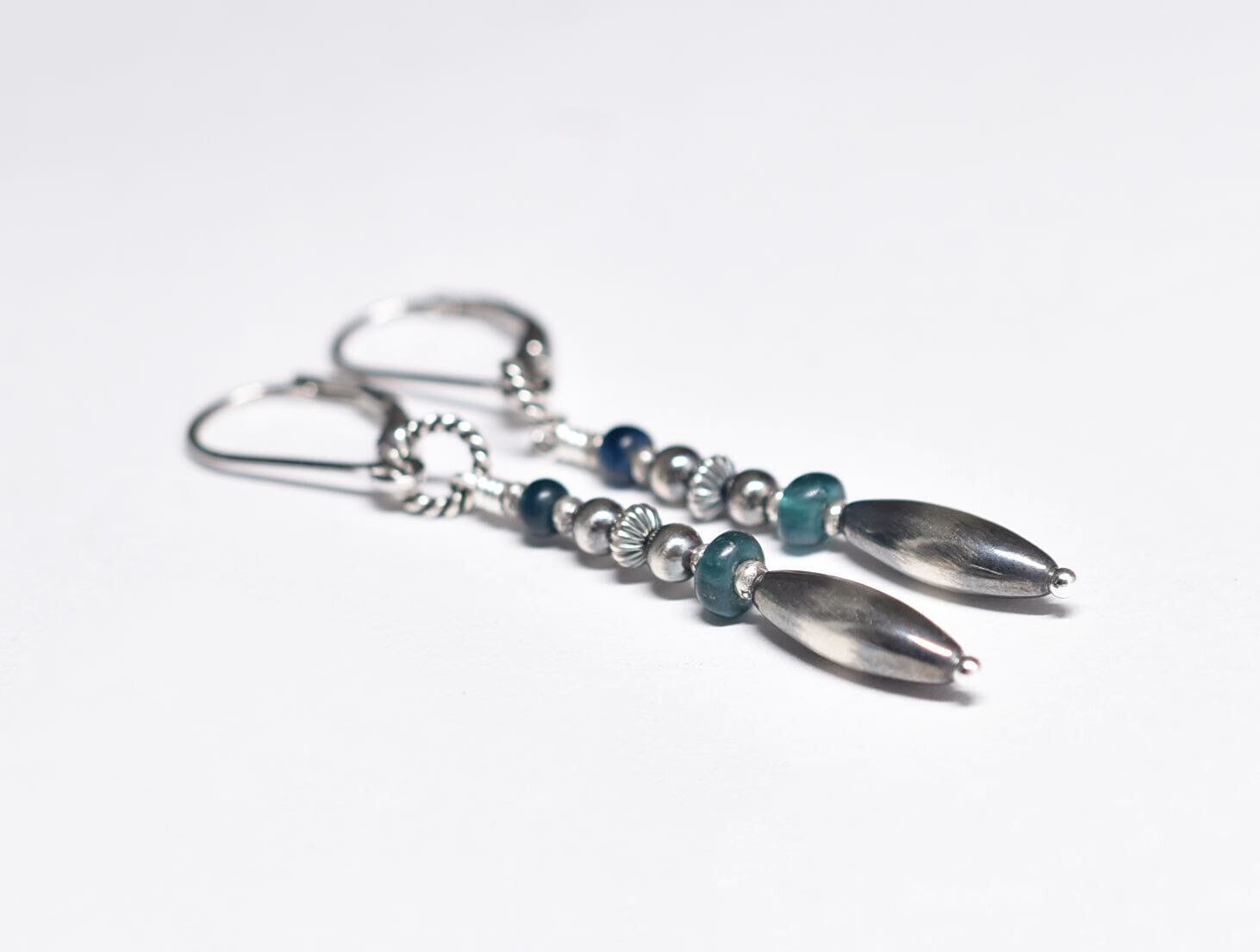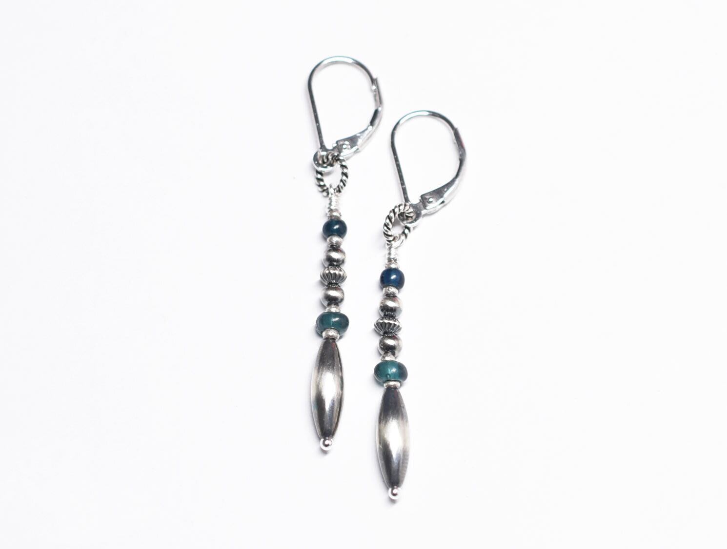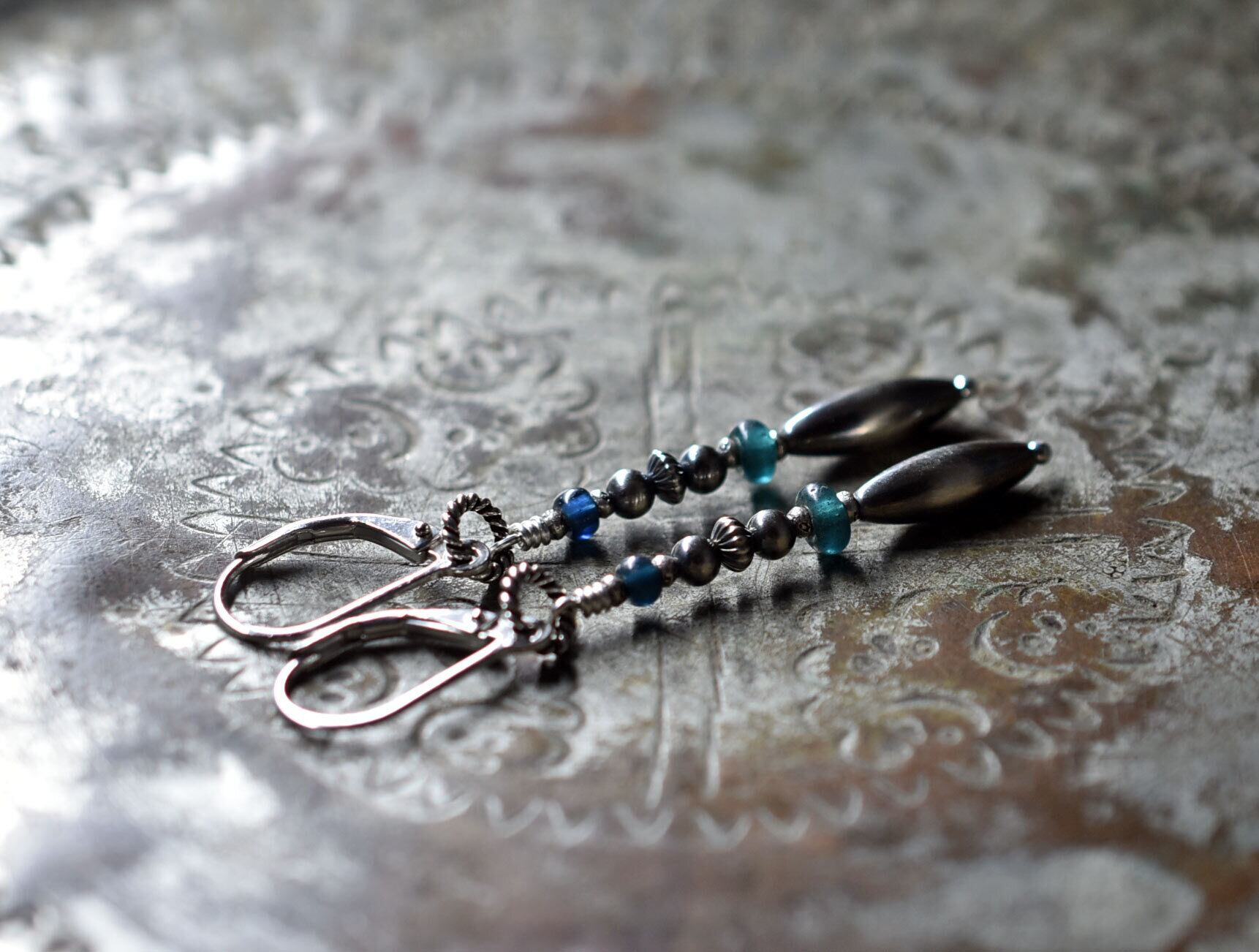 多彩ナバホパールとインディゴブルービーズのスリムなピアス