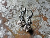 上部のキャップ、二重螺旋の輪っかや間の小さなビーズはカレンシルバーです。