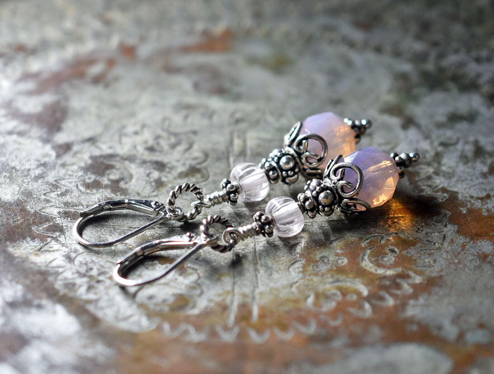 ピンクオパールはヴィンテージのボヘミアビーズです。