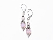 ピンクオパールヴィンテージボヘミアビーズとグーズベリーのピアス