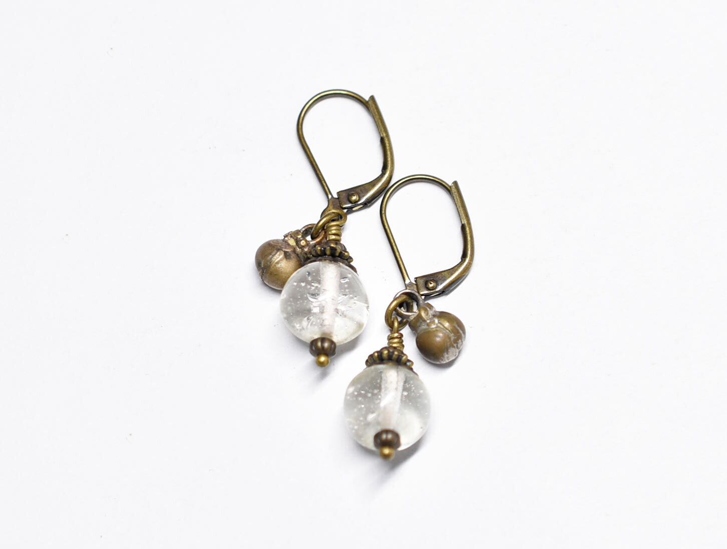 アンティーククリアビーズと民族鈴を繋いだピアスです。