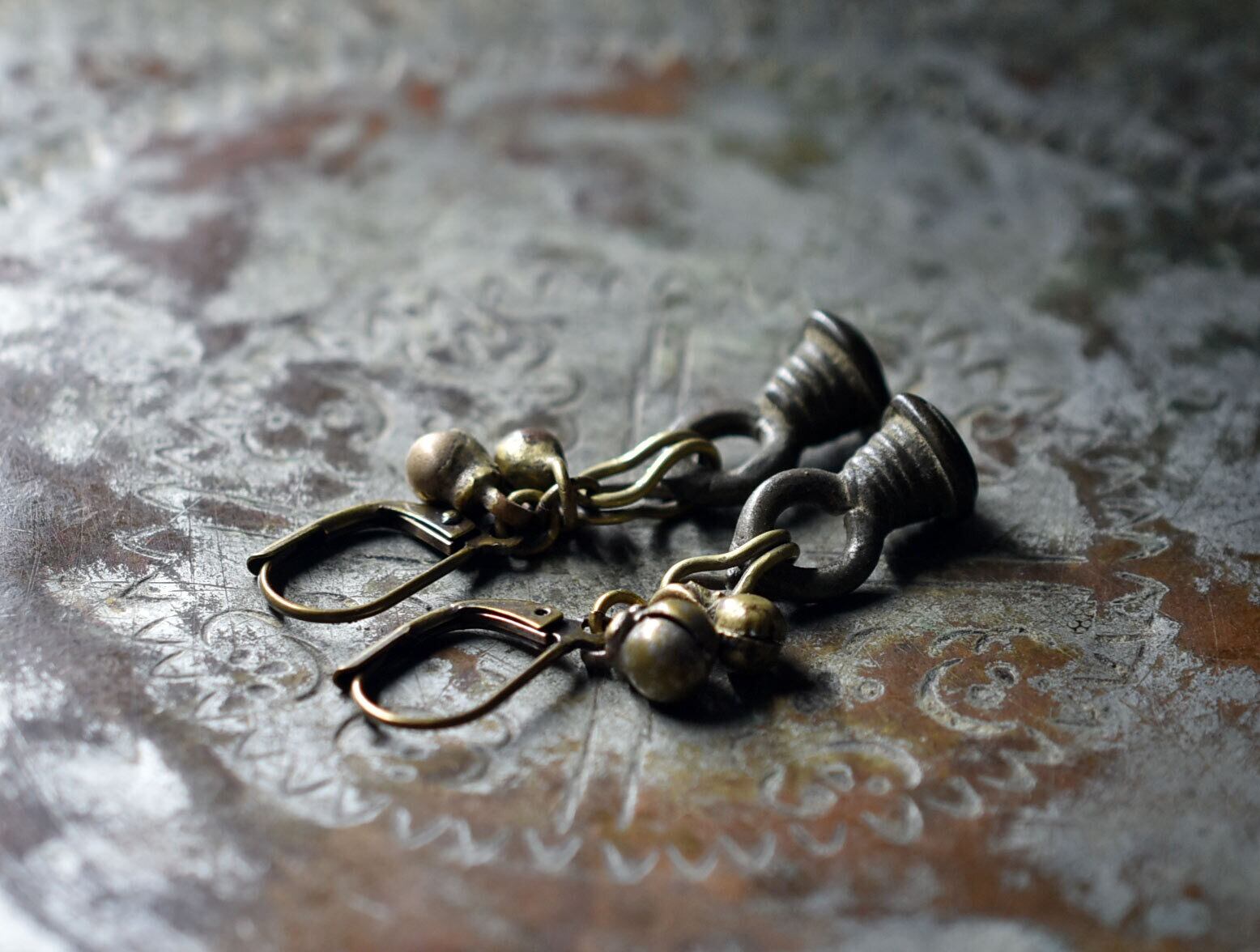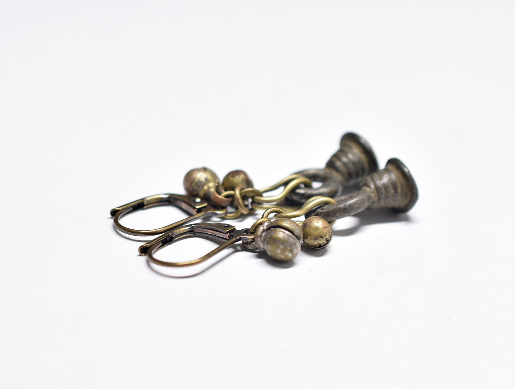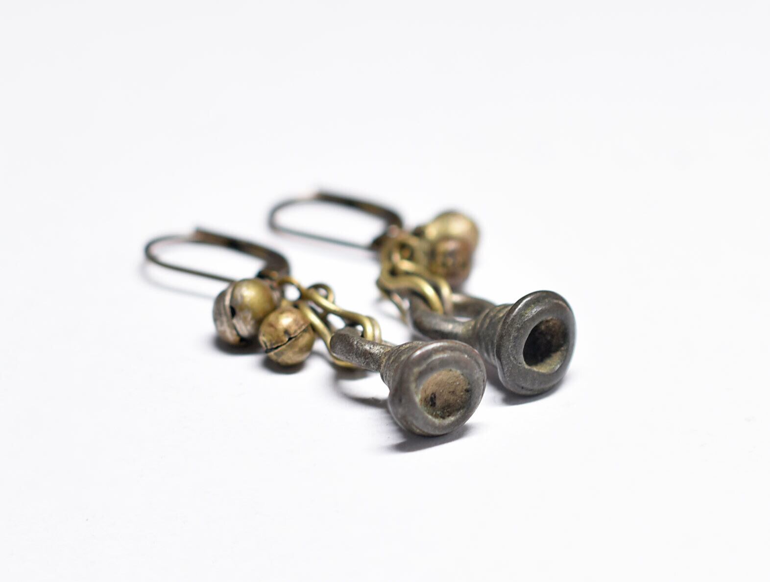 アンティークベル型アフリカンブラスと民族鈴のピアス