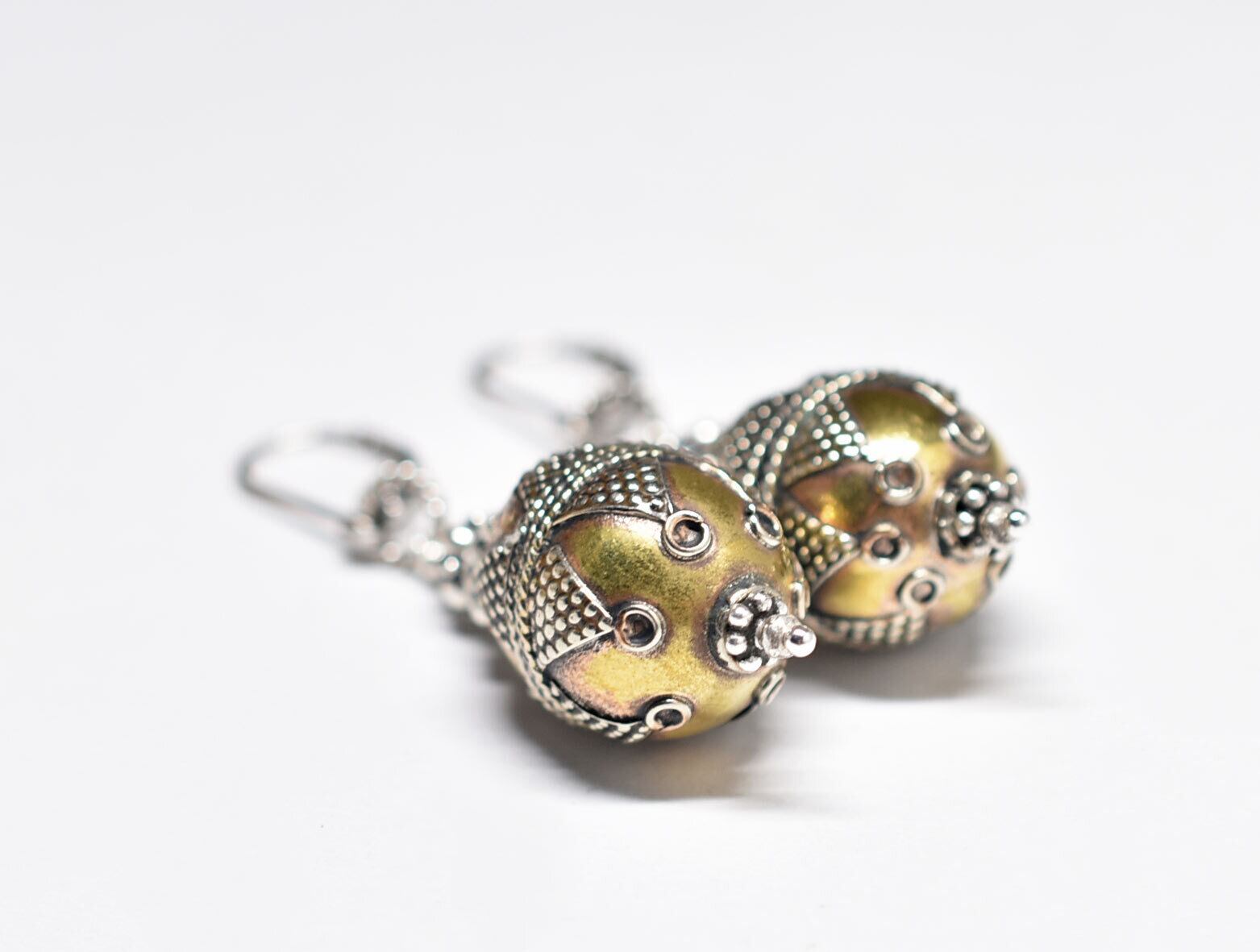 トルクメニスタン細工ビーズとシルバービーズのピアス