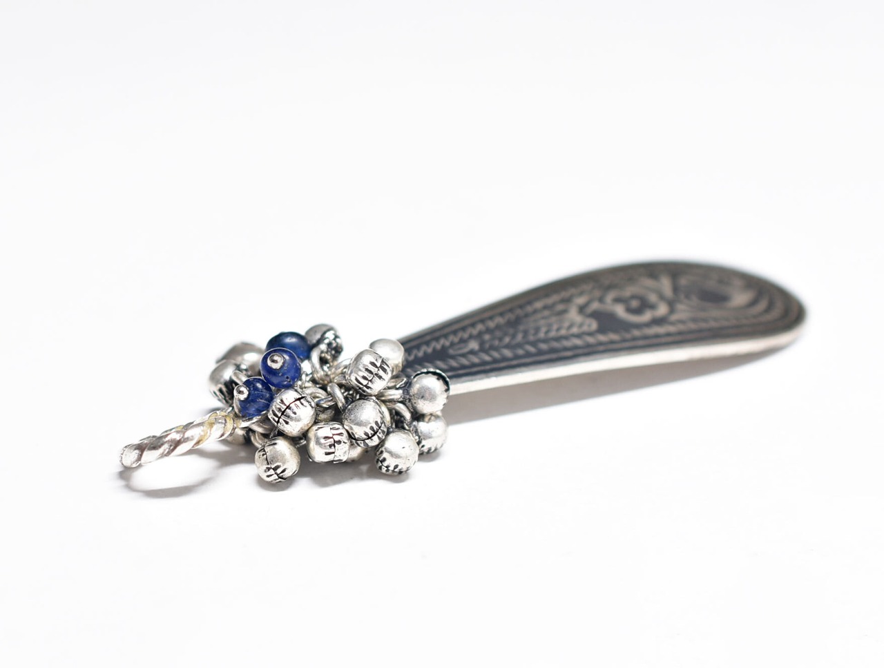 グルジアoldシルバーとたわわなインドシルバー鈴、oldアフガンシルバーパーツ、ブルーアンティークビーズのペンダントトップ