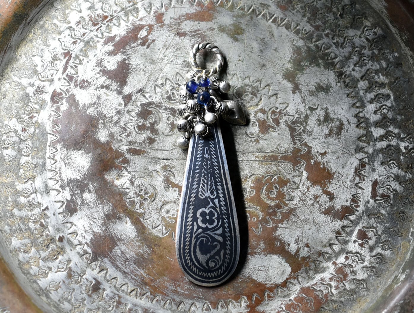 ペイズリー型のパーツは20世紀中期ごろもしくは、さらに古い時代に作られたアフガニスタンのシルバーパーツです。