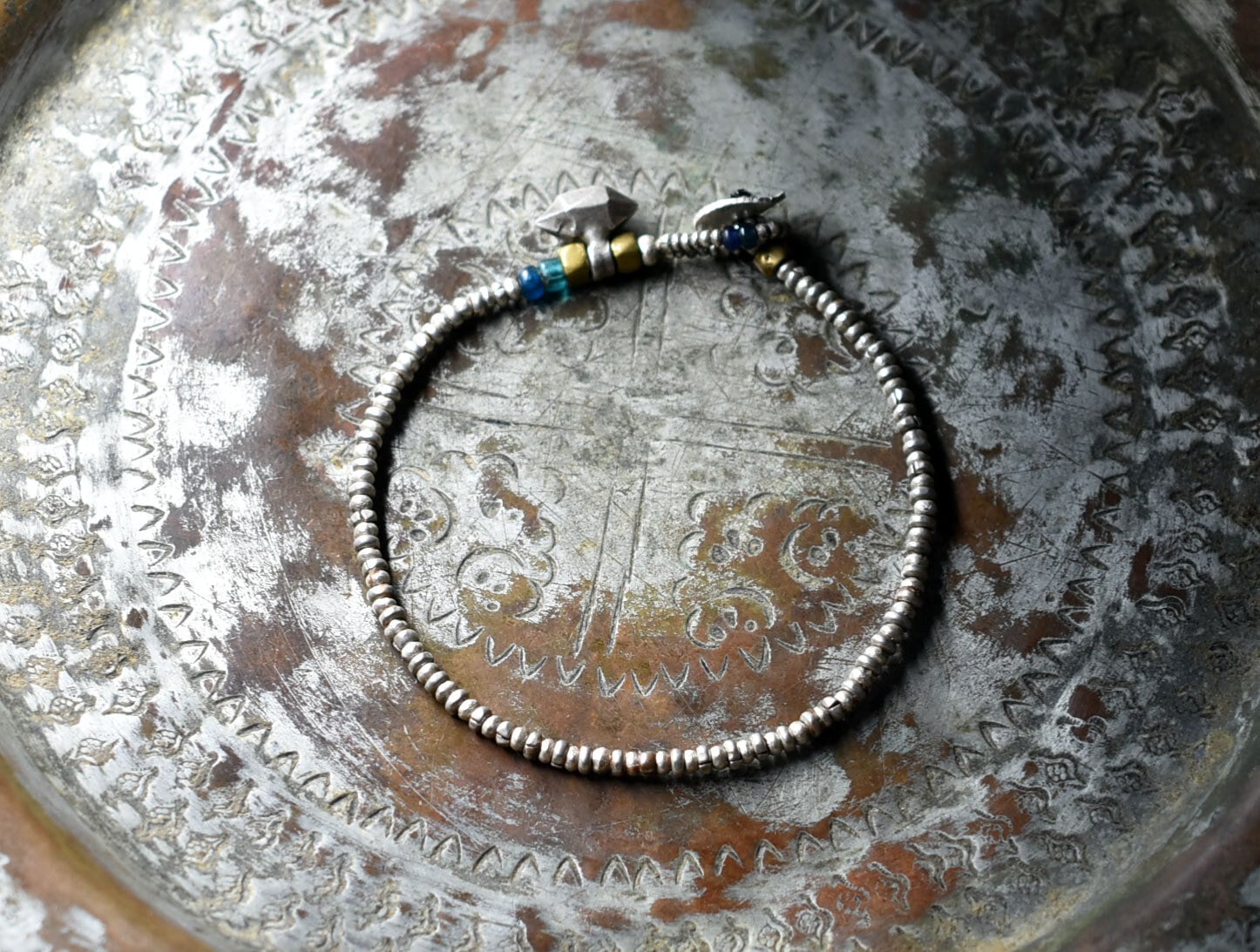 シャン族oldシルバーとカレンシルバー、oldオリッサブラス、ブルービーズ、oldアフガンメタルチャームのブレス